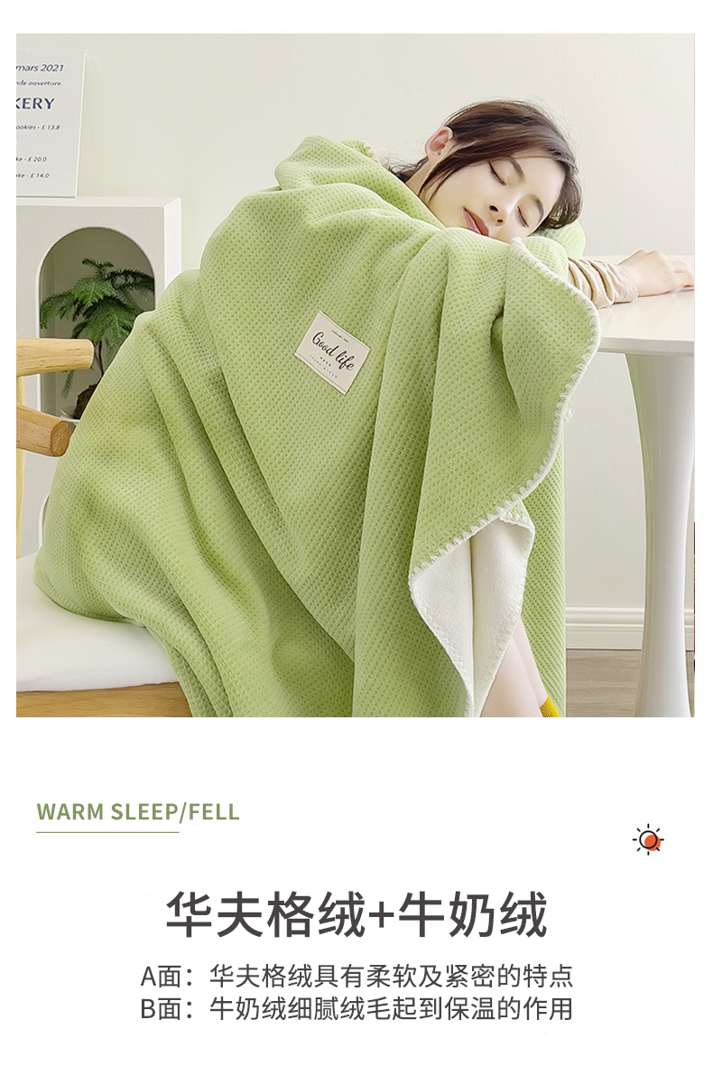(总)华夫格空调毯 办公室午睡披肩毯双层