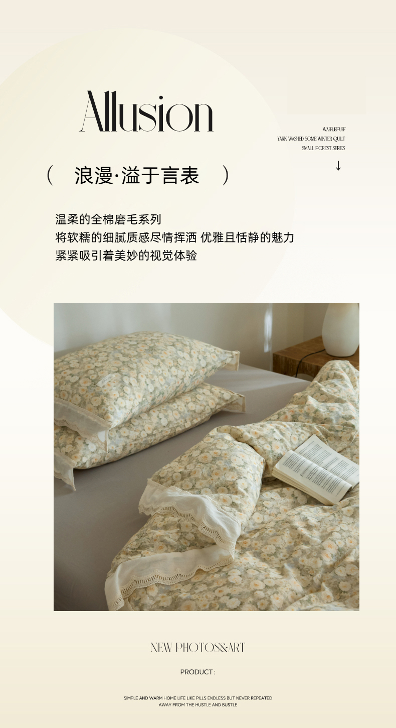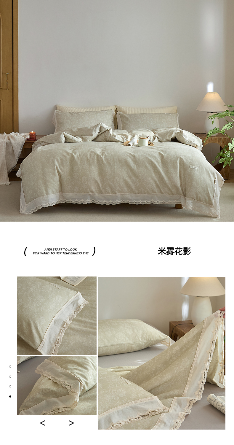 (总)大彩家居 2025新款全棉纯棉水洗磨毛四件套,晨雾,繁花,灰蔓,米雾花影,谧境,暖棕碎花,浅蓝繁花,棕榈繁影