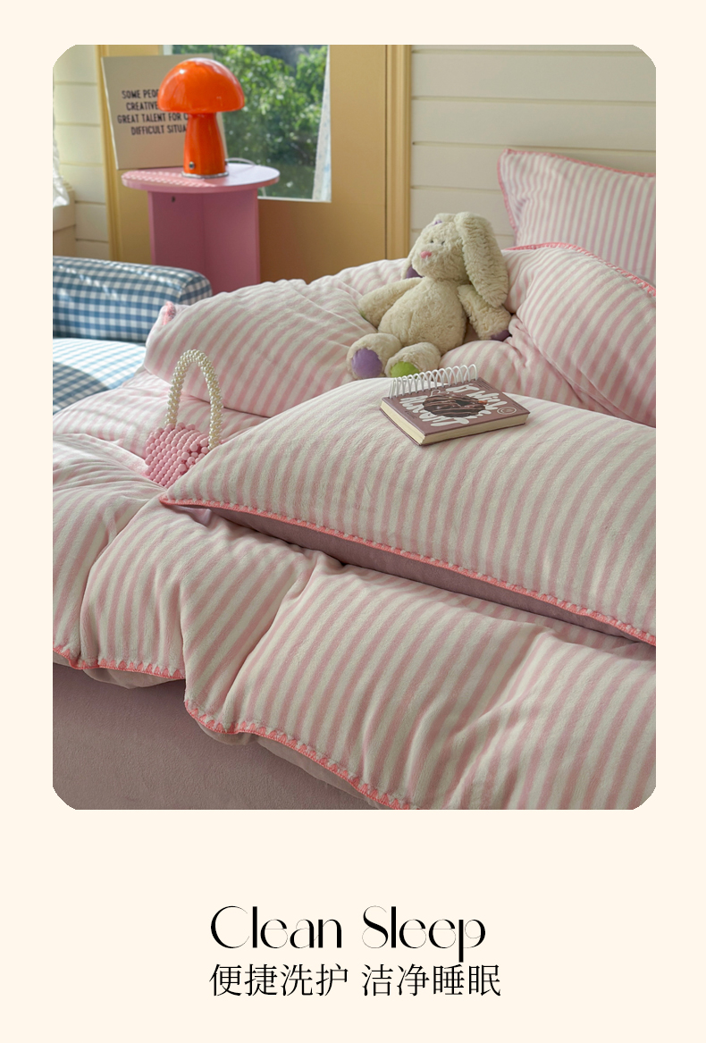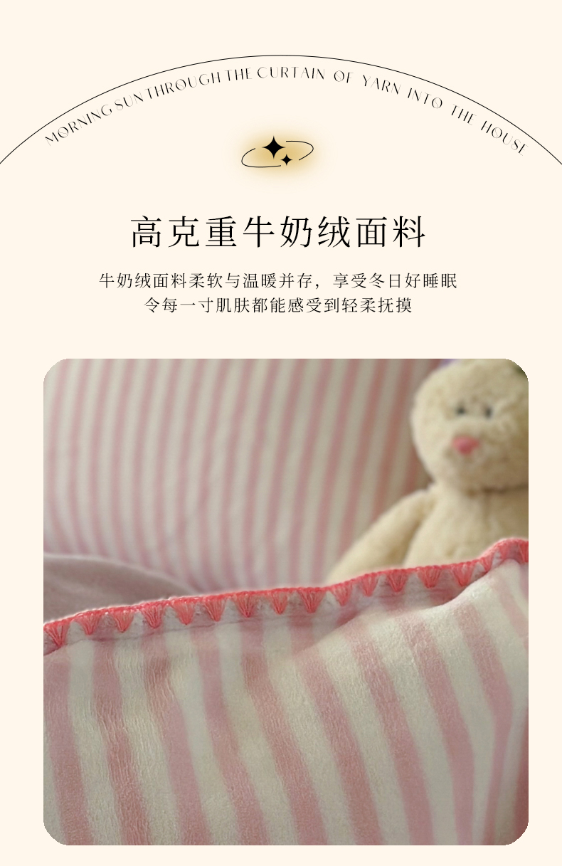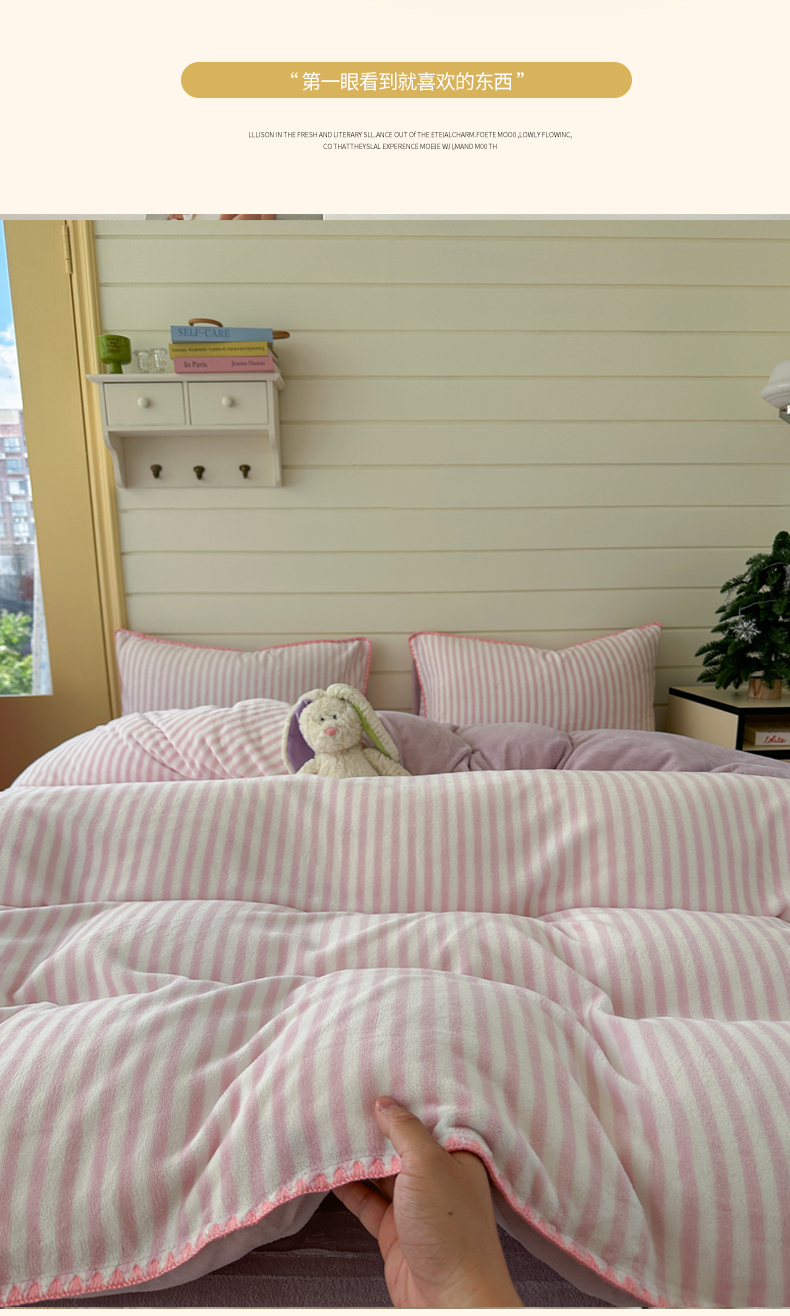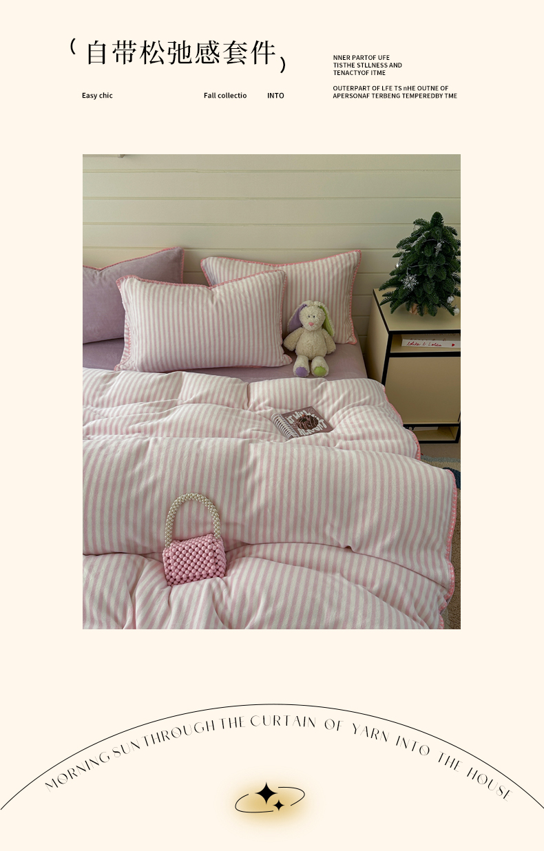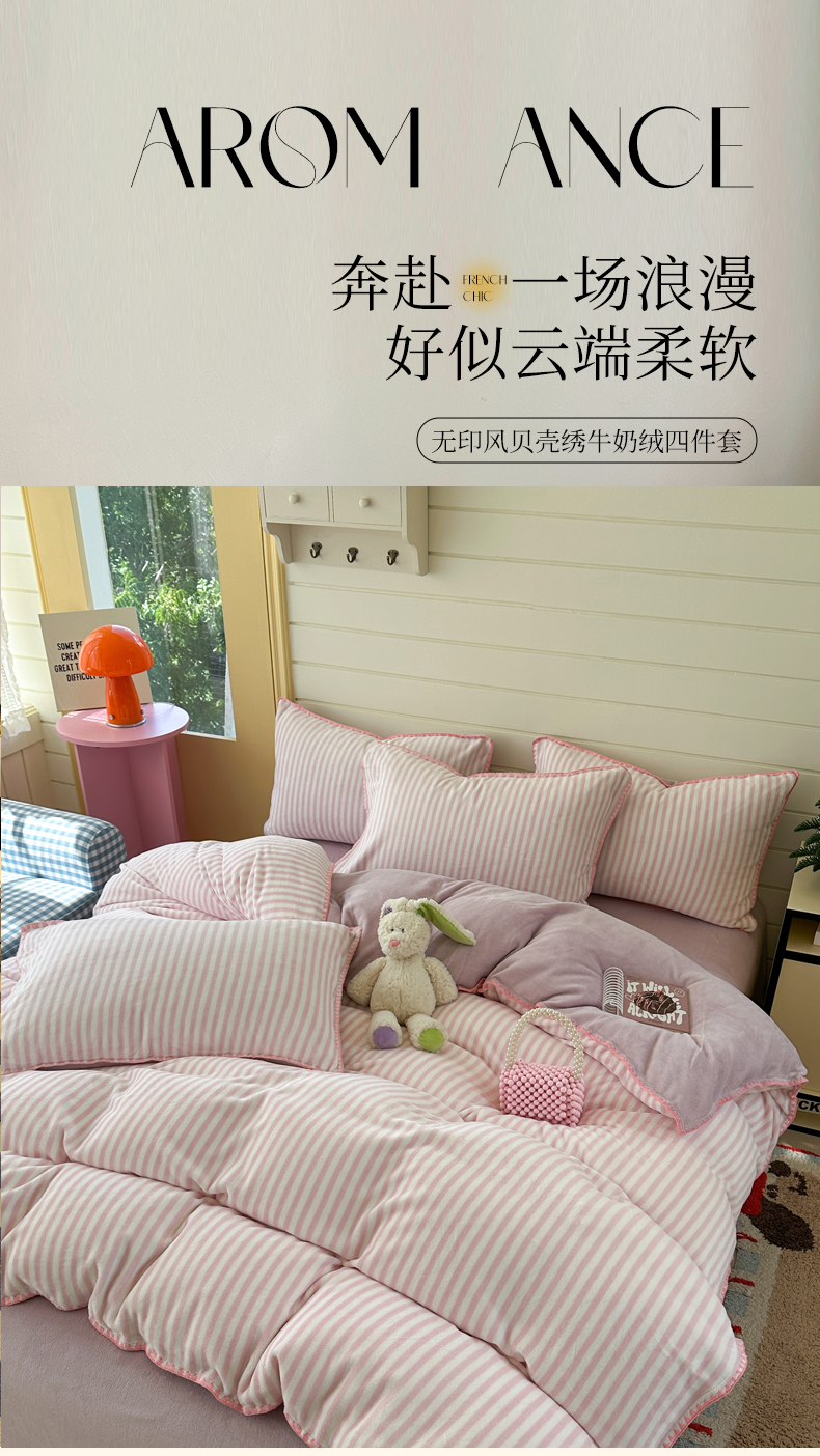 当前位置: 91家纺网 > 商品网购 > 床品套件 > 四件套 > 牛奶绒四件套 > 三朵家纺 2025新款无印风三角针牛奶绒四件套 樱花粉细条