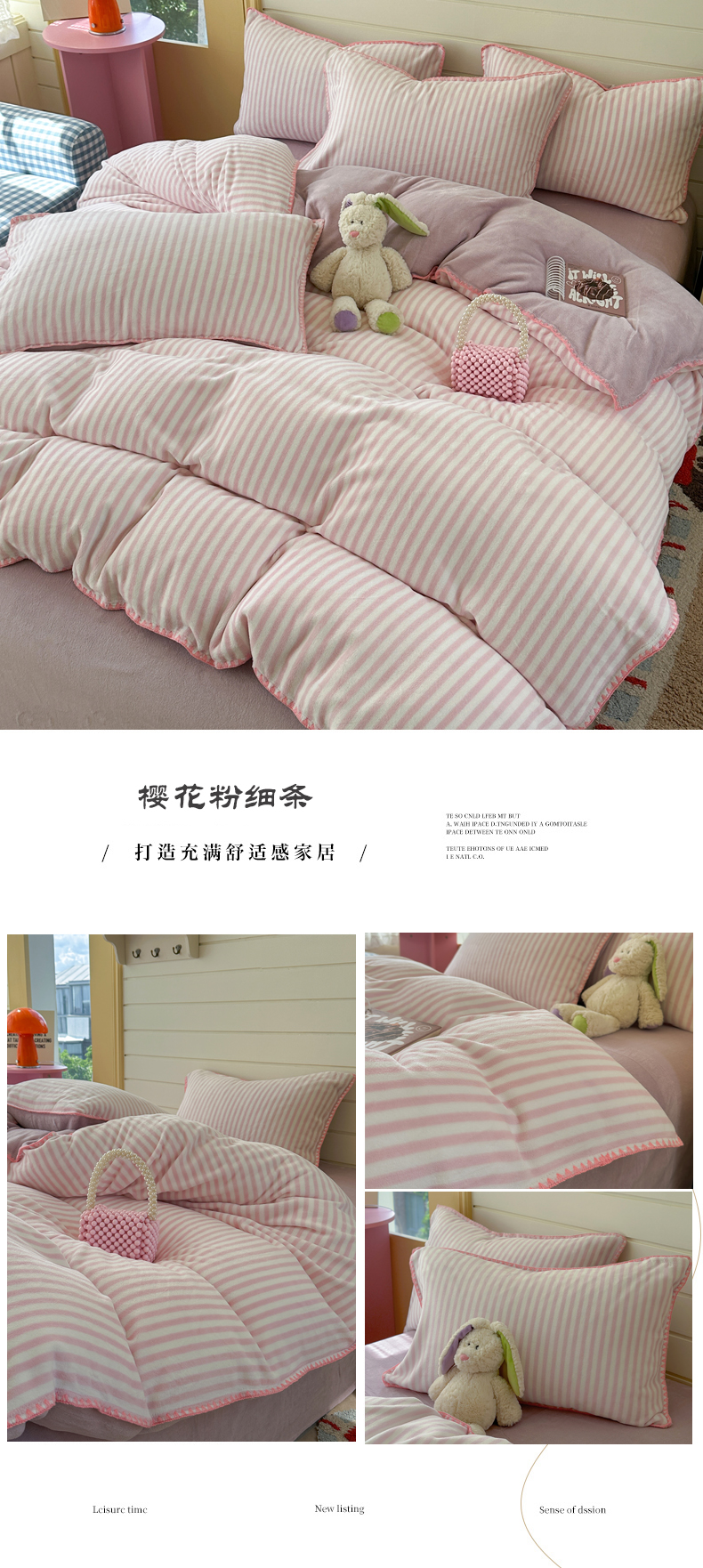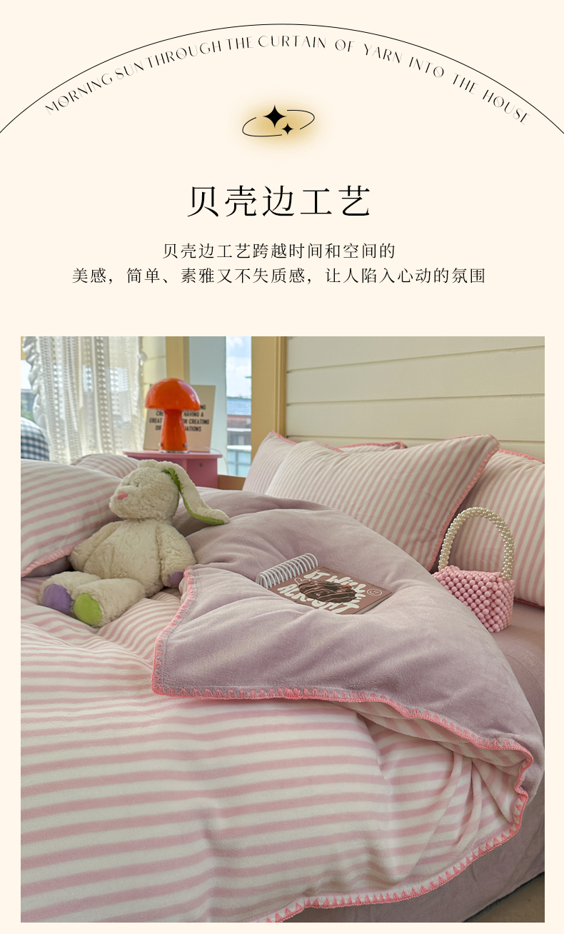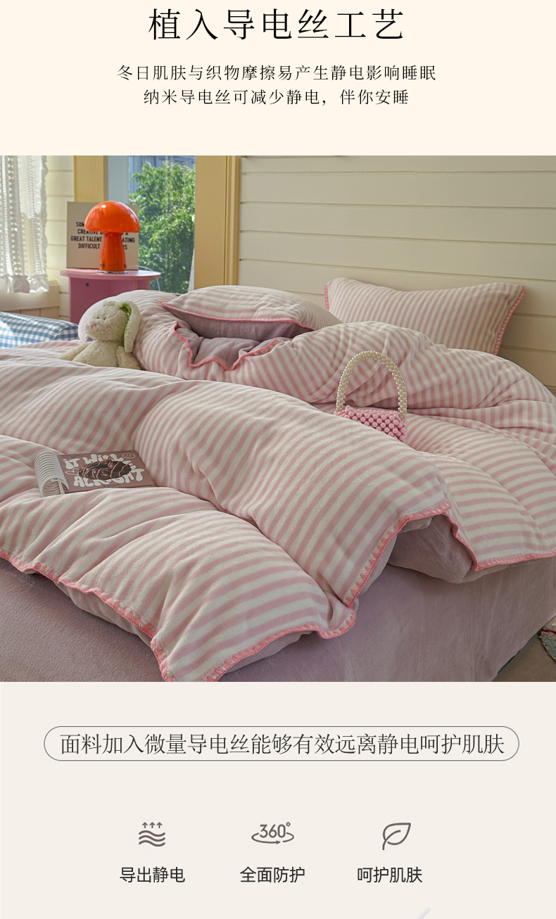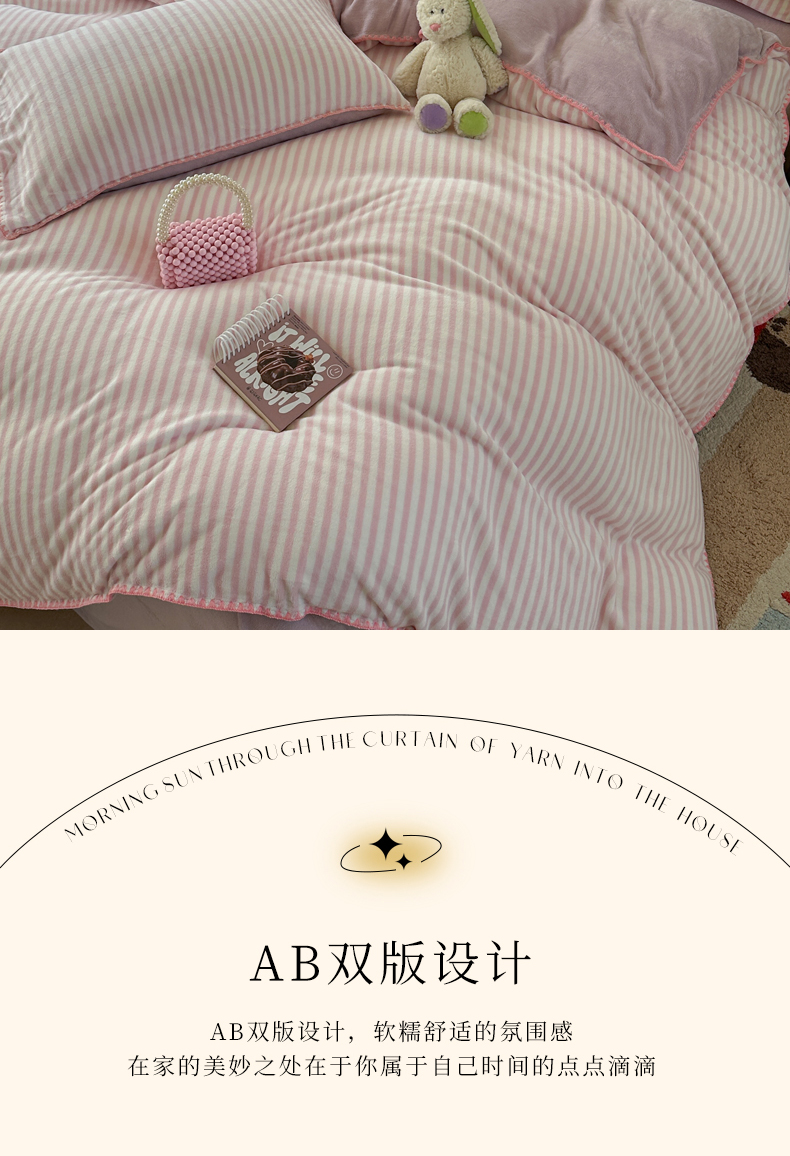 当前位置: 91家纺网 > 商品网购 > 床品套件 > 四件套 > 牛奶绒四件套 > 三朵家纺 2025新款无印风三角针牛奶绒四件套 樱花粉细条