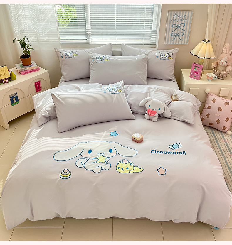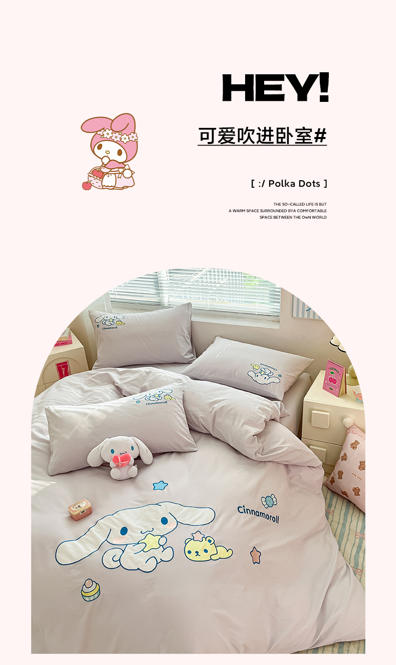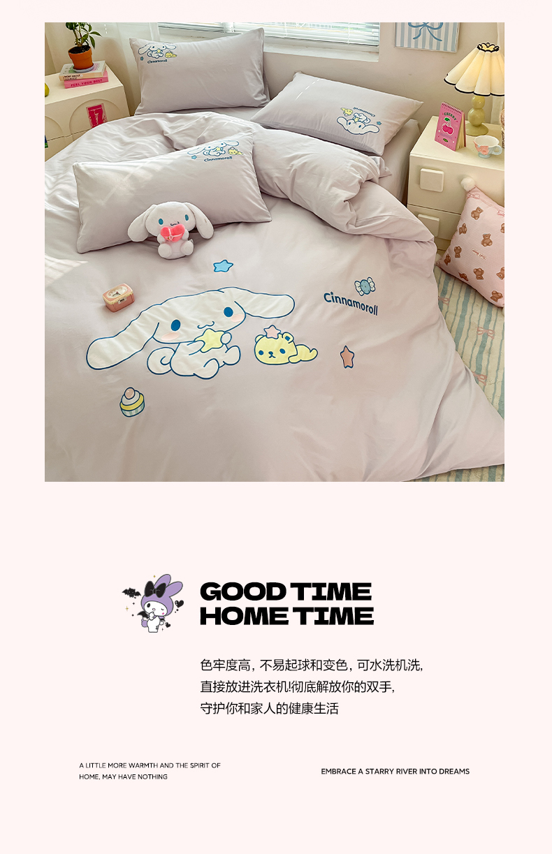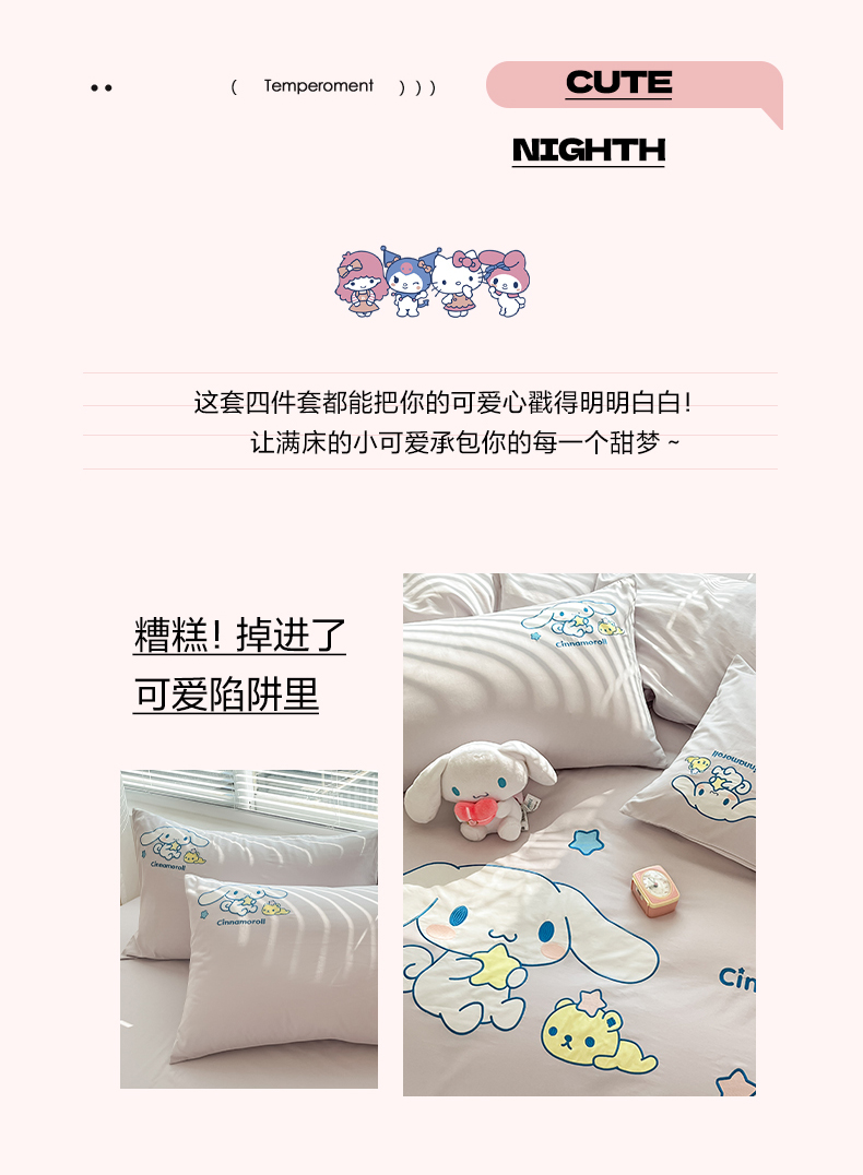 当前位置: 91家纺网 > 商品网购 > 床品套件 > 四件套 > 全棉普通四件套 > 蓝邻家纺 2025年新款全棉纯棉云柔棉三丽鸥刺绣四件套系列 星愿大耳狗