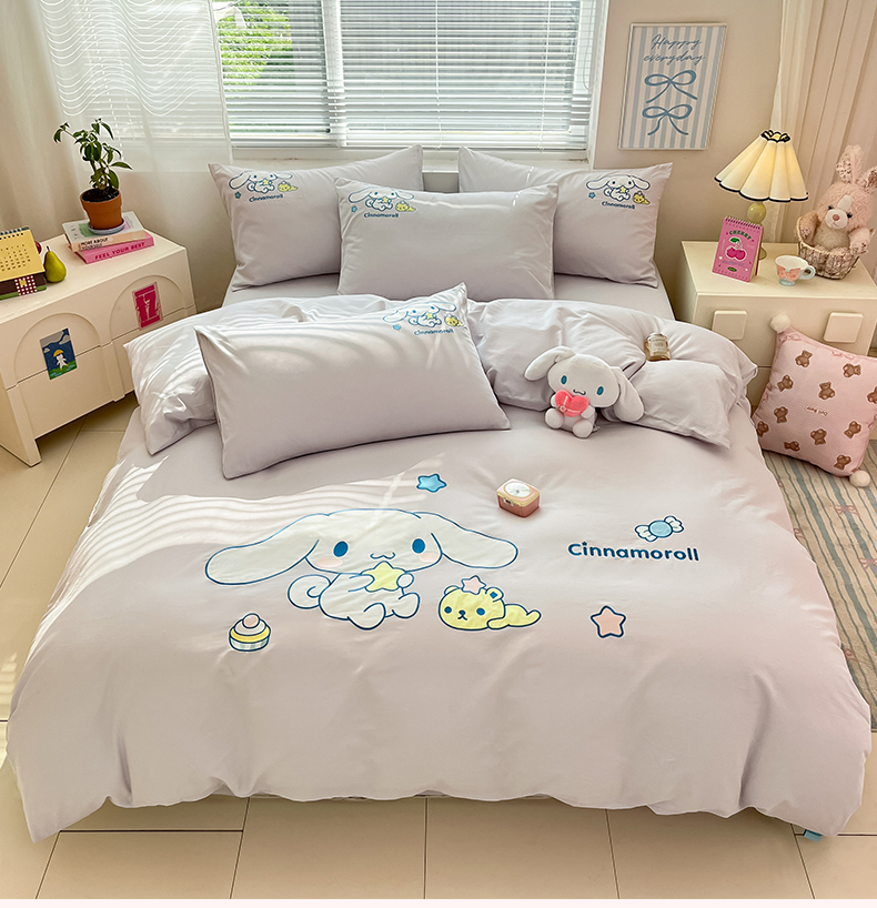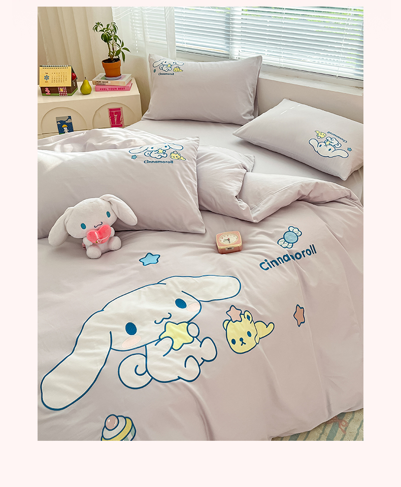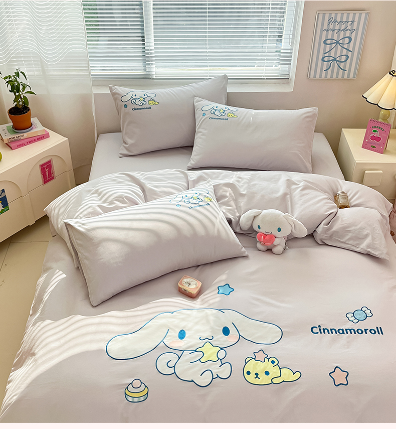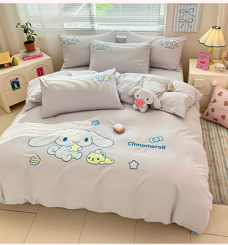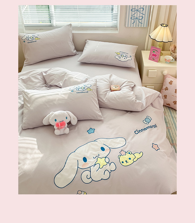 当前位置: 91家纺网 > 商品网购 > 床品套件 > 四件套 > 全棉普通四件套 > 蓝邻家纺 2025年新款全棉纯棉云柔棉三丽鸥刺绣四件套系列 星愿大耳狗