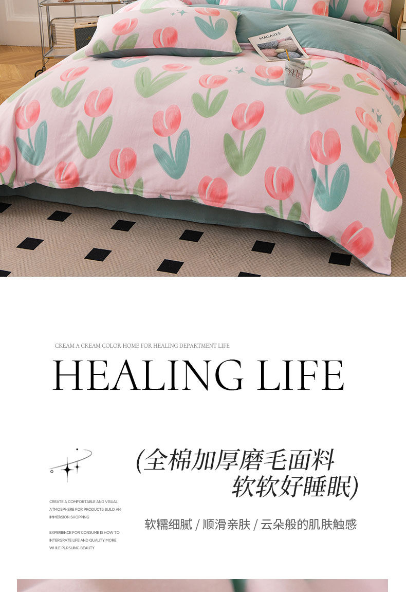商品名称:宇彬家纺 2025直播热新款秋冬全棉精梳生态原棉印花加厚磨毛轻奢铂金单被套 一见倾心(粉)