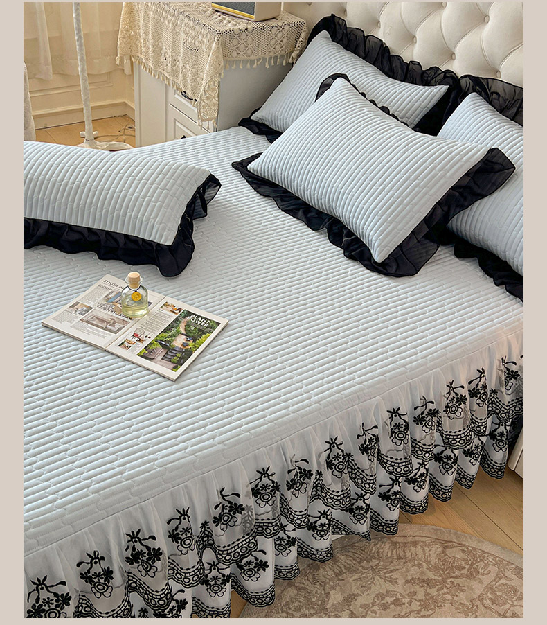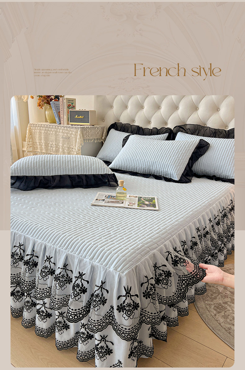 • 91家纺网 家纺一手货源 找家纺 鼎丰家纺 2025新款皱皱纱双层花边夹棉床裙单床裙床裙单品-梦想系列 梦想-浅蓝