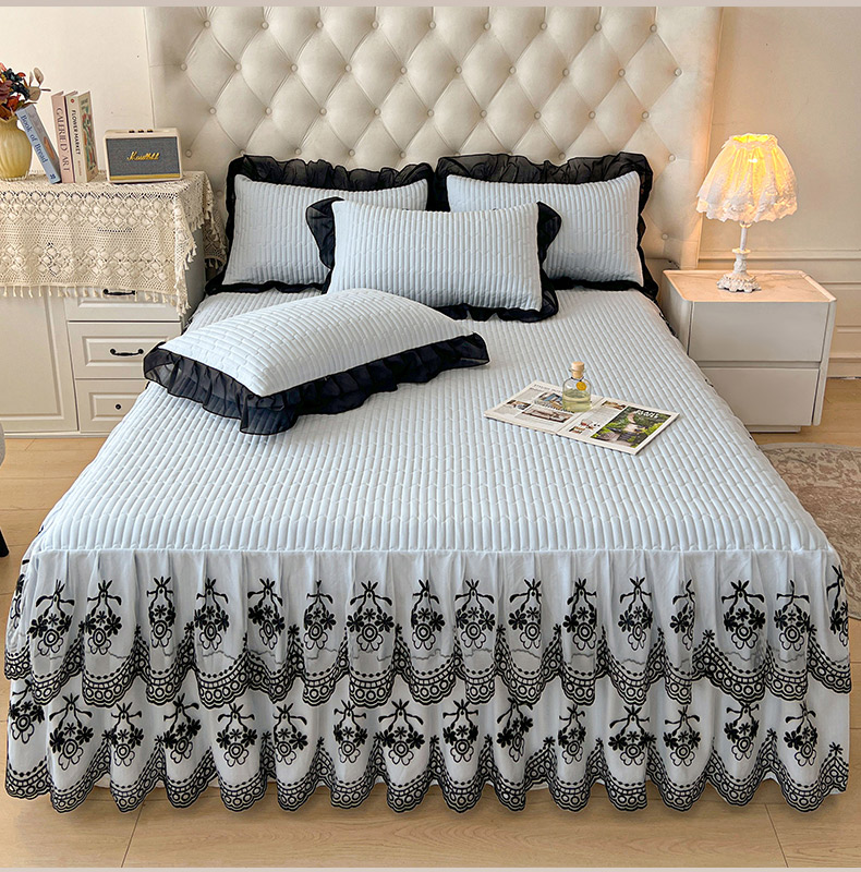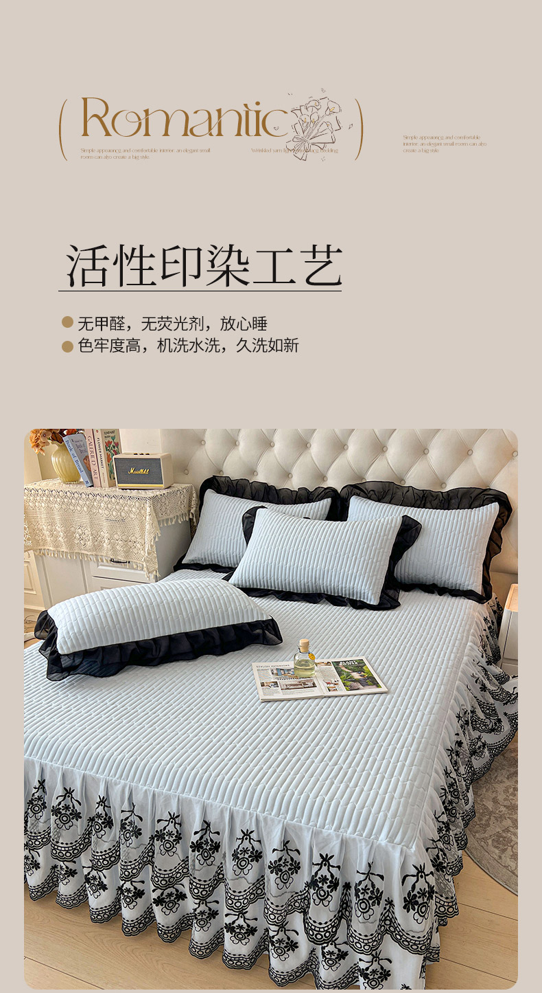 鼎丰家纺 2025新款皱皱纱双层花边夹棉床裙单床裙床裙单品-梦想系列 梦想-浅蓝