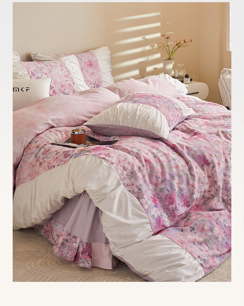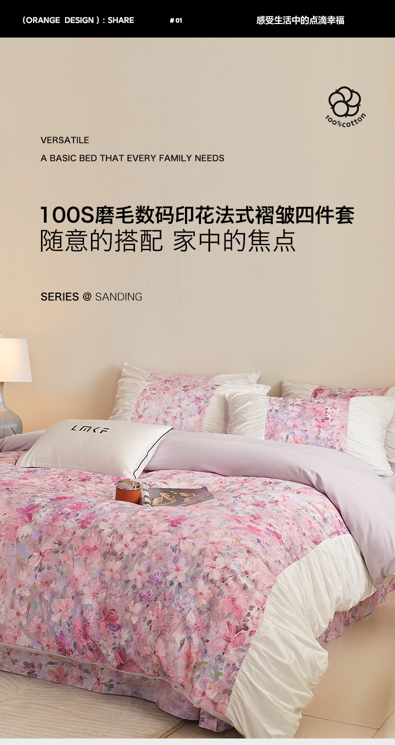 蓝米卡夫 2025秋冬-A类全棉50S*50S双股磨毛数码印花法式褶皱花边款(礼盒包装)-拍摄风格1 笔触与诗-玉
