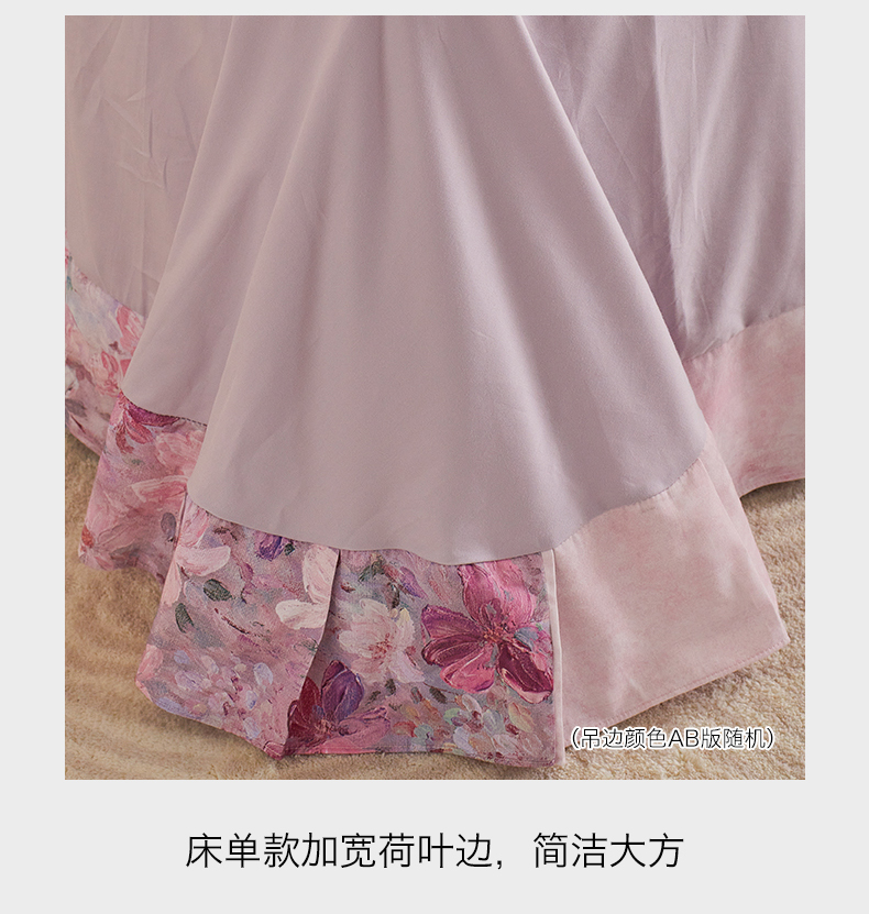 商品名称:蓝米卡夫 2025秋冬-A类全棉50S*50S双股磨毛数码印花法式褶皱花边款(礼盒包装)-拍摄风格1 笔触与诗-玉