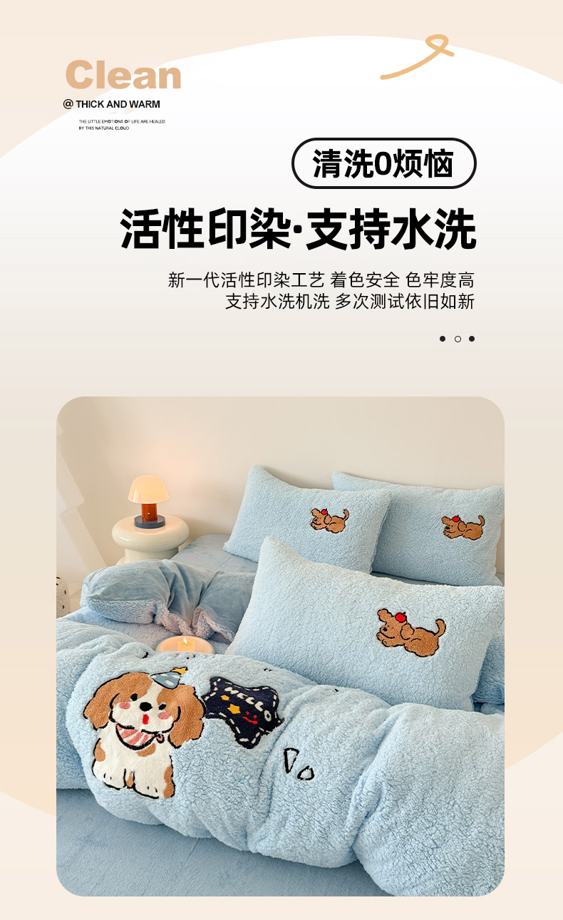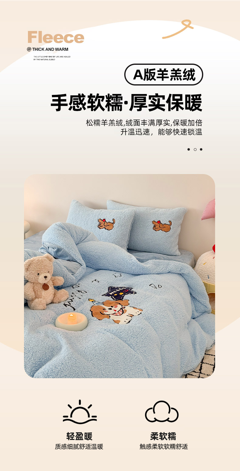 商品名称:乐坊 2025新款小阪羊羔绒牛奶绒卡通四件套冬季加厚保暖 星星小狗-蓝