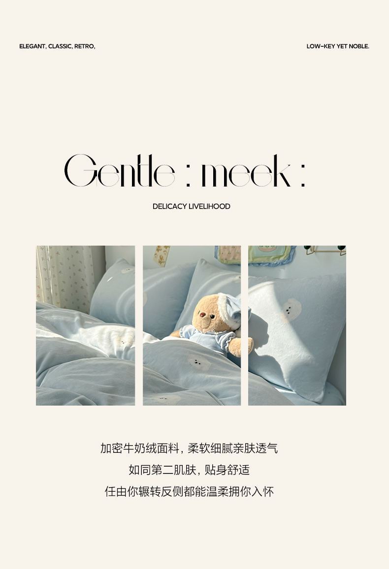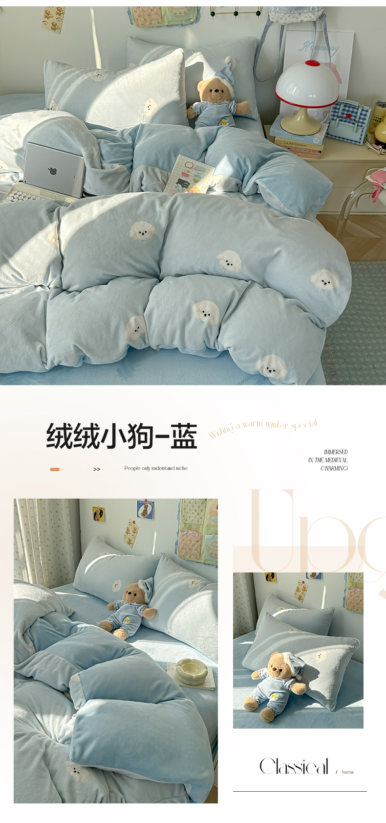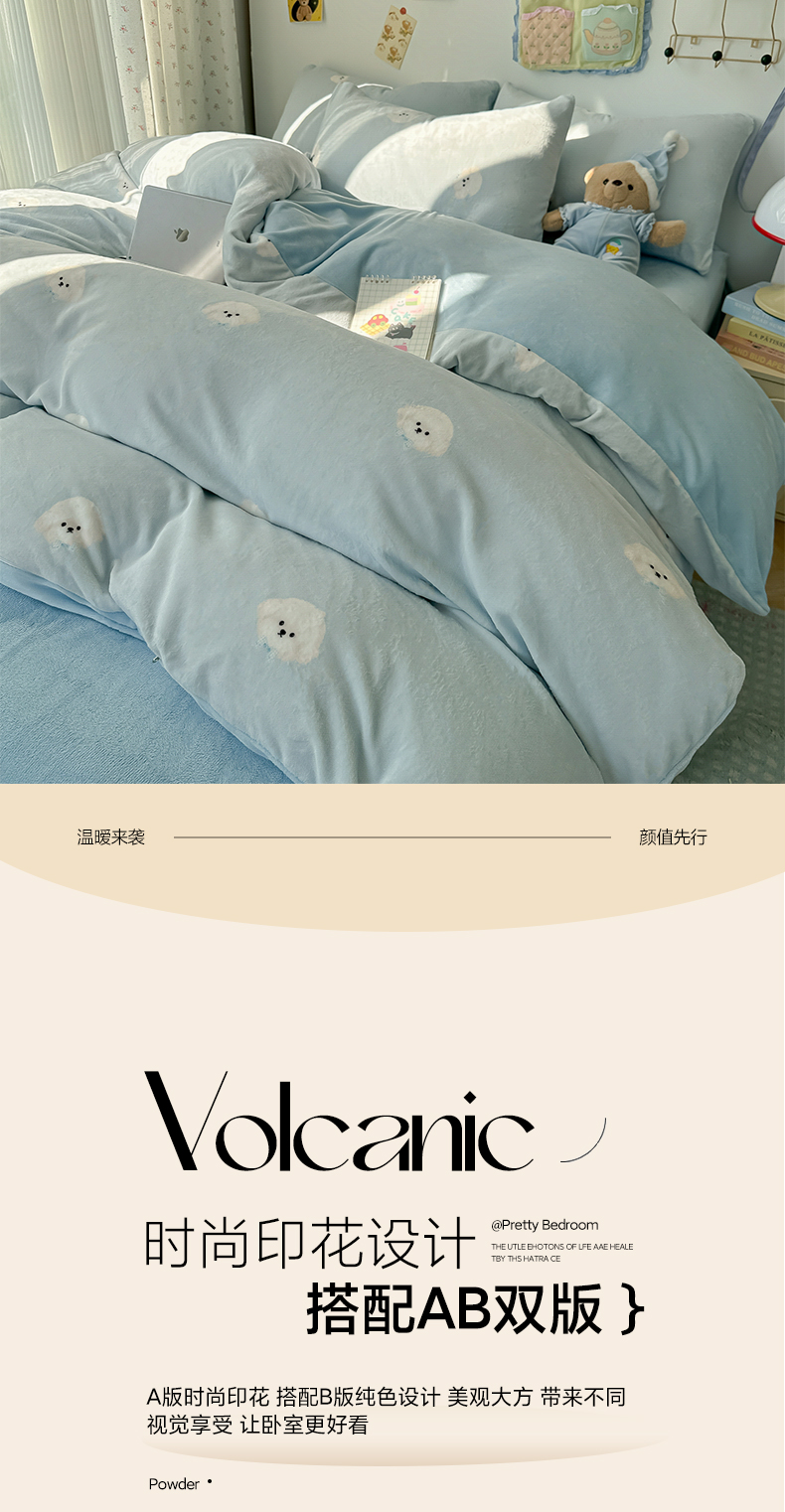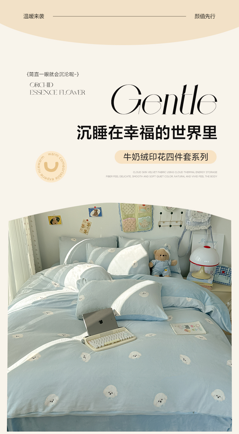 当前位置: 91家纺网 > 商品网购 > 床品套件 > 四件套 > 牛奶绒四件套 > 韩巢家纺 2025新款高克重牛奶绒四件套冬季绒床品被套床单三件套 绒绒小狗-蓝