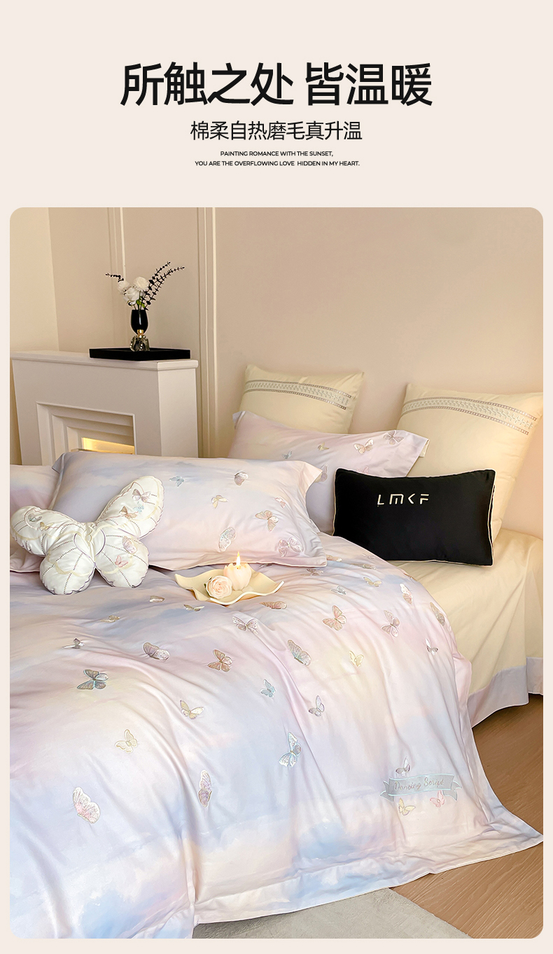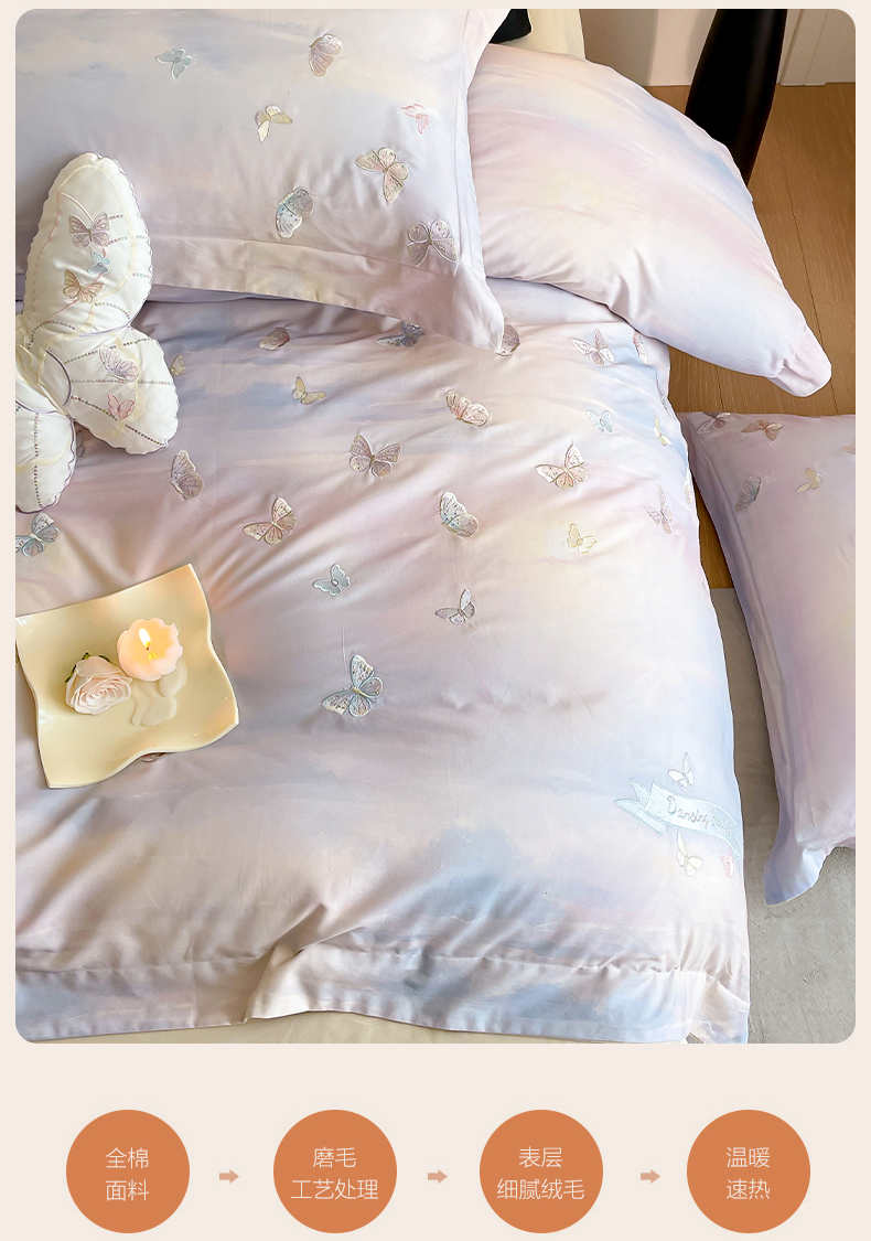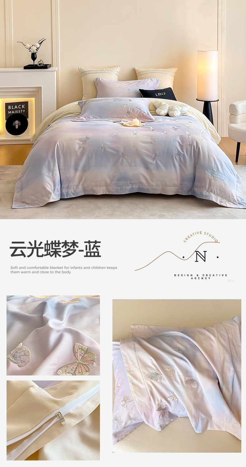 蓝米卡夫 2025秋冬-A类全棉50S*50S双股磨毛印+绣-云光蝶梦系列(礼盒包装)-拍摄风格2 提供买家秀 云光蝶梦-蓝