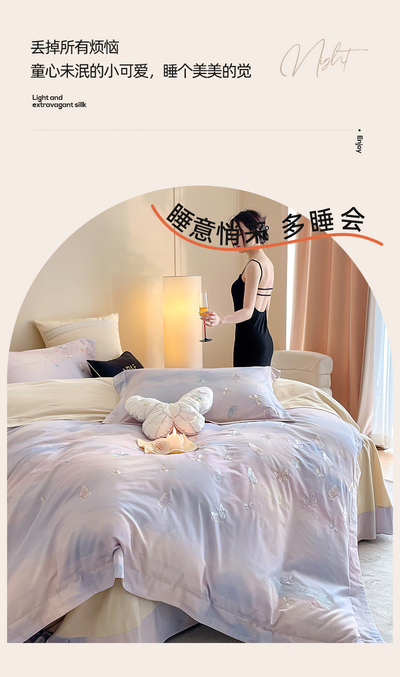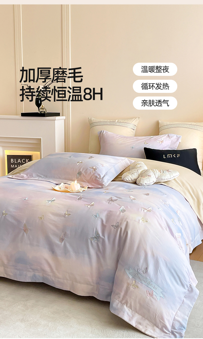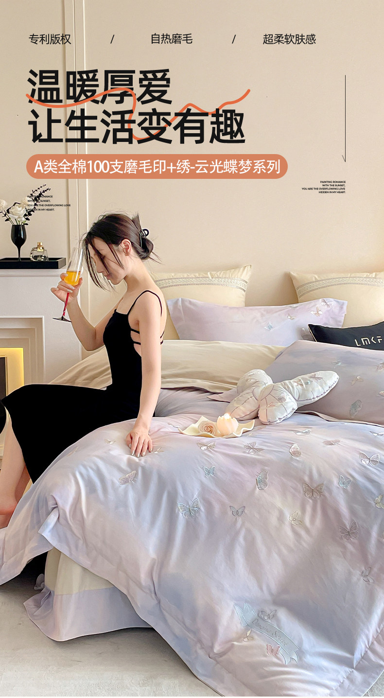 蓝米卡夫 2025秋冬-A类全棉50S*50S双股磨毛印+绣-云光蝶梦系列(礼盒包装)-拍摄风格2 提供买家秀 云光蝶梦-蓝