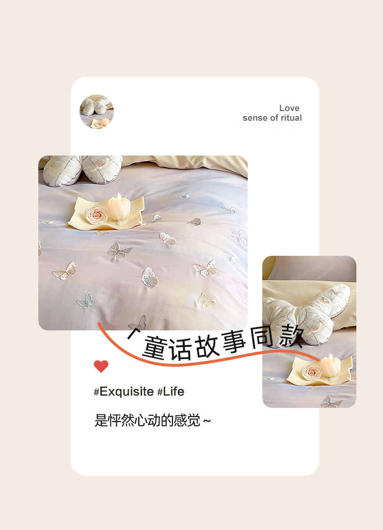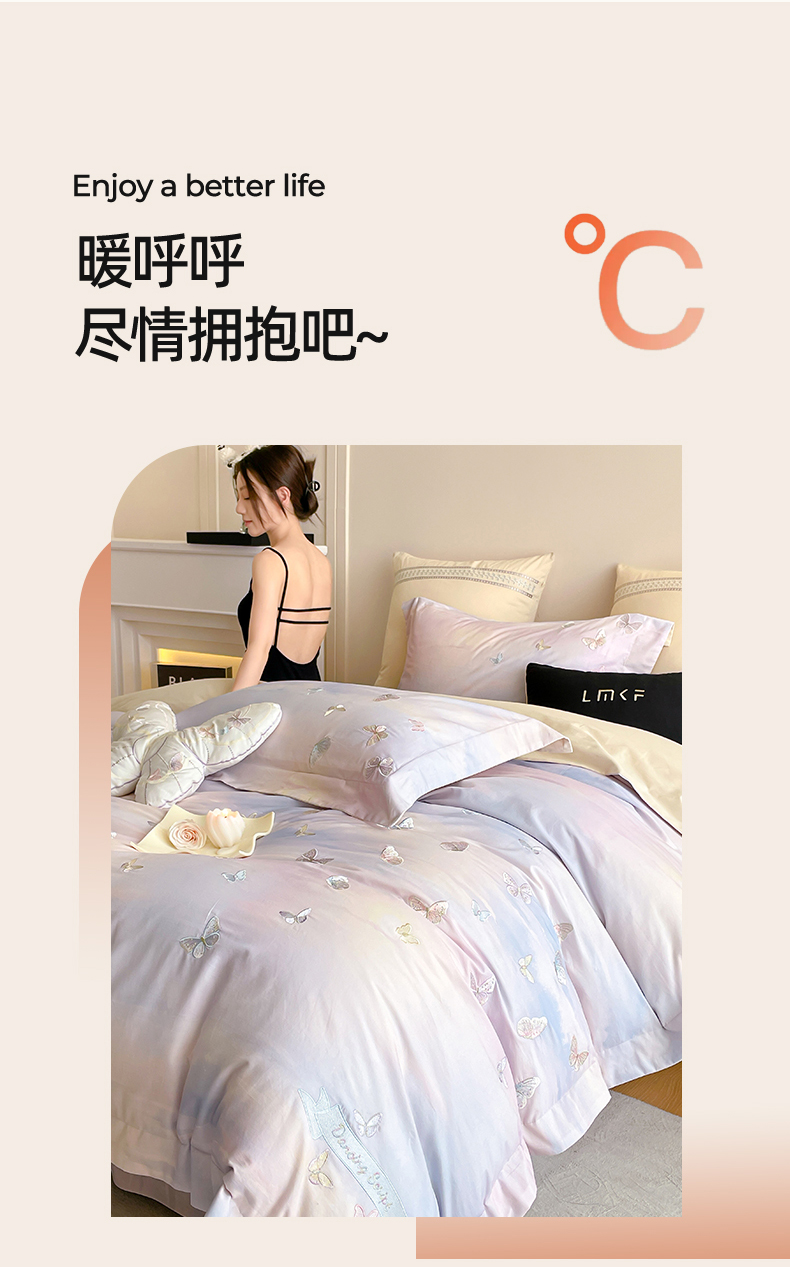 (总)蓝米卡夫 2026春季新款-60S长绒棉贡缎蝴蝶刺绣花边系列四件套-福蝶吉祥(礼盒)-拍摄风格1,福蝶吉祥-优雅粉,福蝶吉祥-大地色,福蝶吉祥-海洋蓝