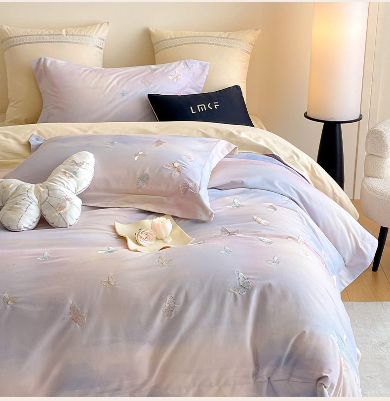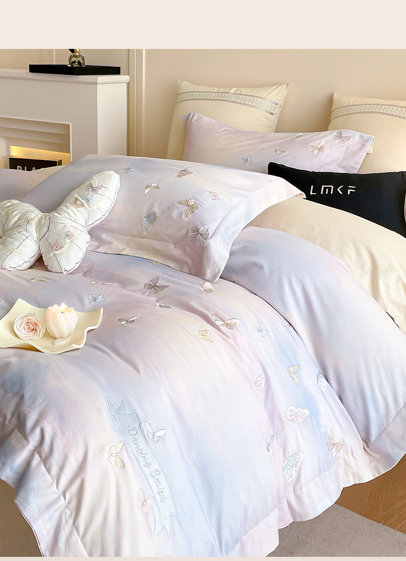 (总)蓝米卡夫 2026春季新款-60S长绒棉贡缎蝴蝶刺绣花边系列四件套-福蝶吉祥(礼盒)-拍摄风格2,福蝶吉祥-大地色,福蝶吉祥-海洋蓝,福蝶吉祥-优雅粉