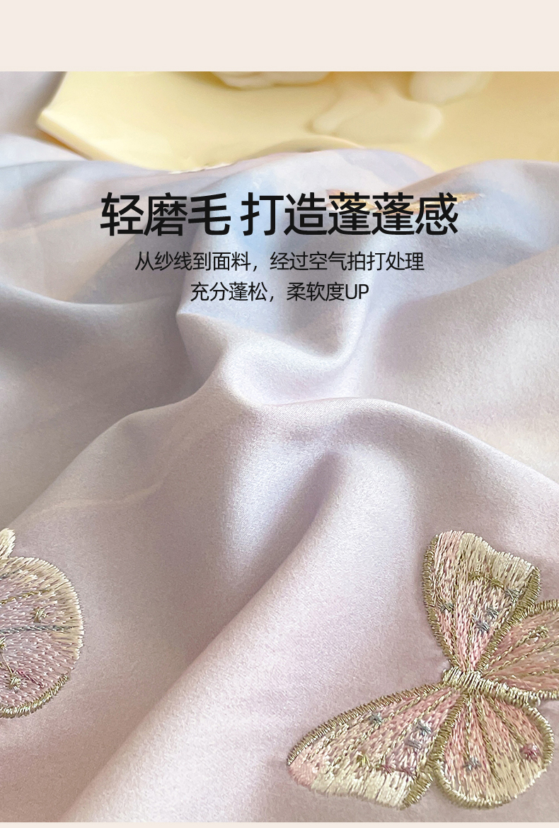 商品名称:蓝米卡夫 2025秋冬-A类全棉50S*50S双股磨毛印+绣-云光蝶梦系列(礼盒包装)-拍摄风格2 提供买家秀 云光蝶梦-蓝