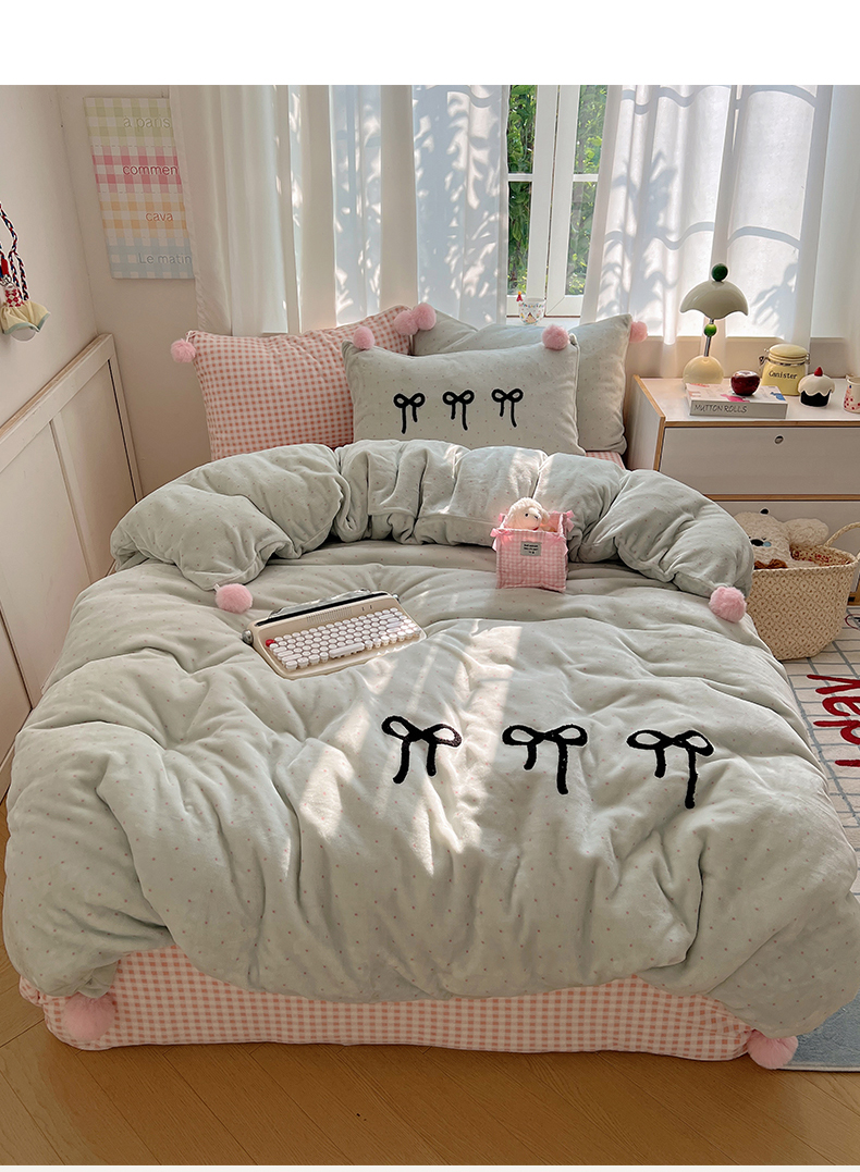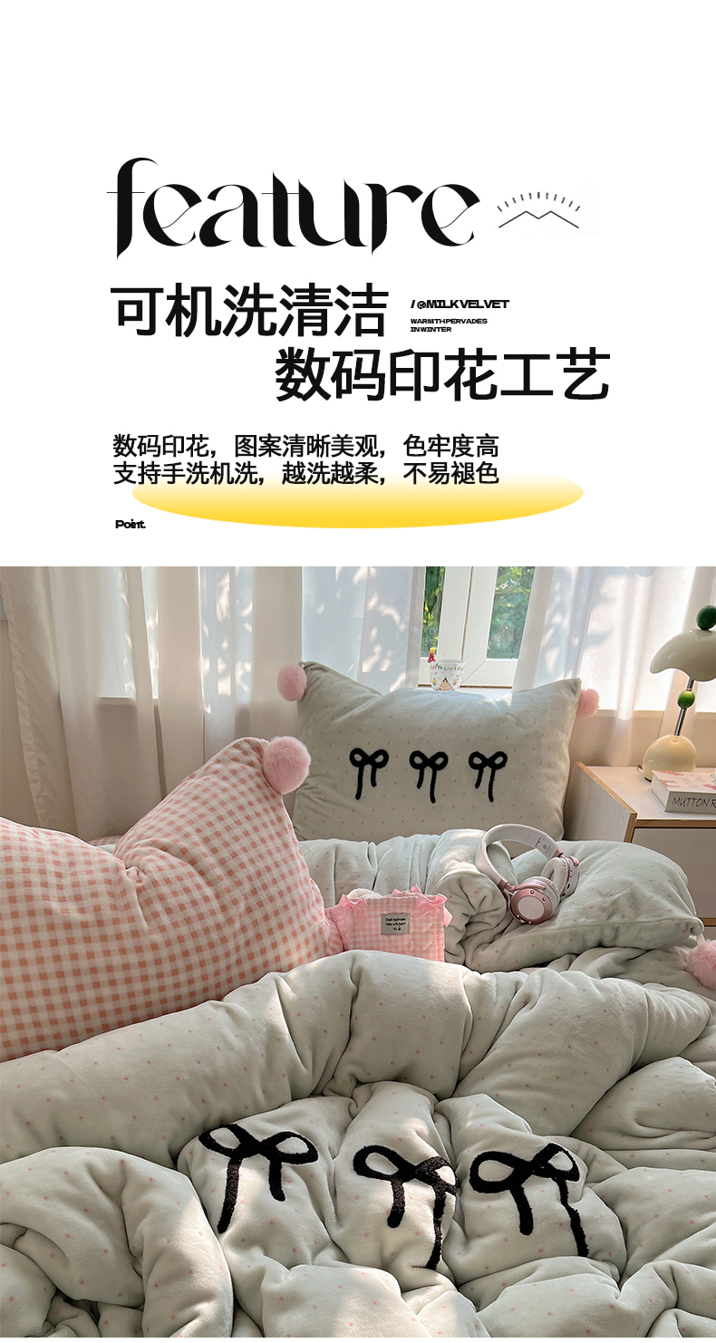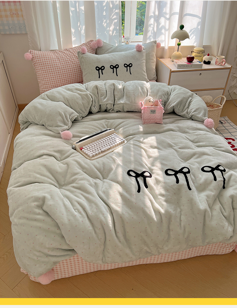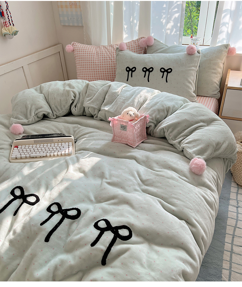当前位置: 91家纺网 > 商品网购 > 床品套件 > 四件套 > 牛奶绒四件套 > 桃子家居 2025新款insA类少女甜心毛球混搭工艺蝴蝶结刺绣毛巾绣印花加厚牛奶绒四件套 绒毛球-蝴蝶结茉莉奶绿