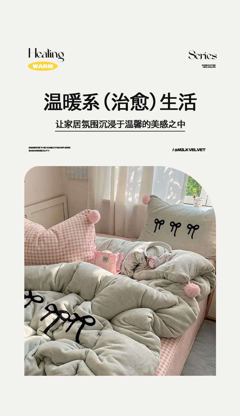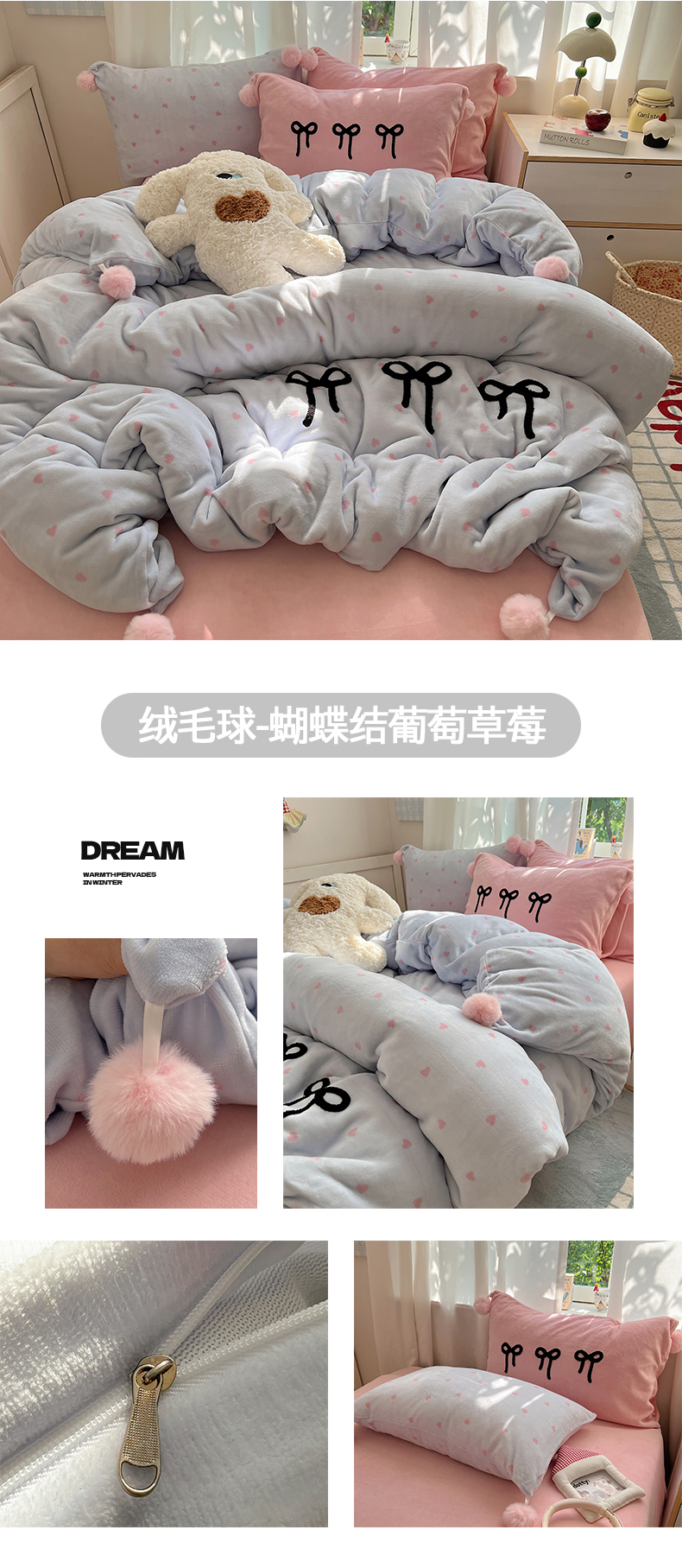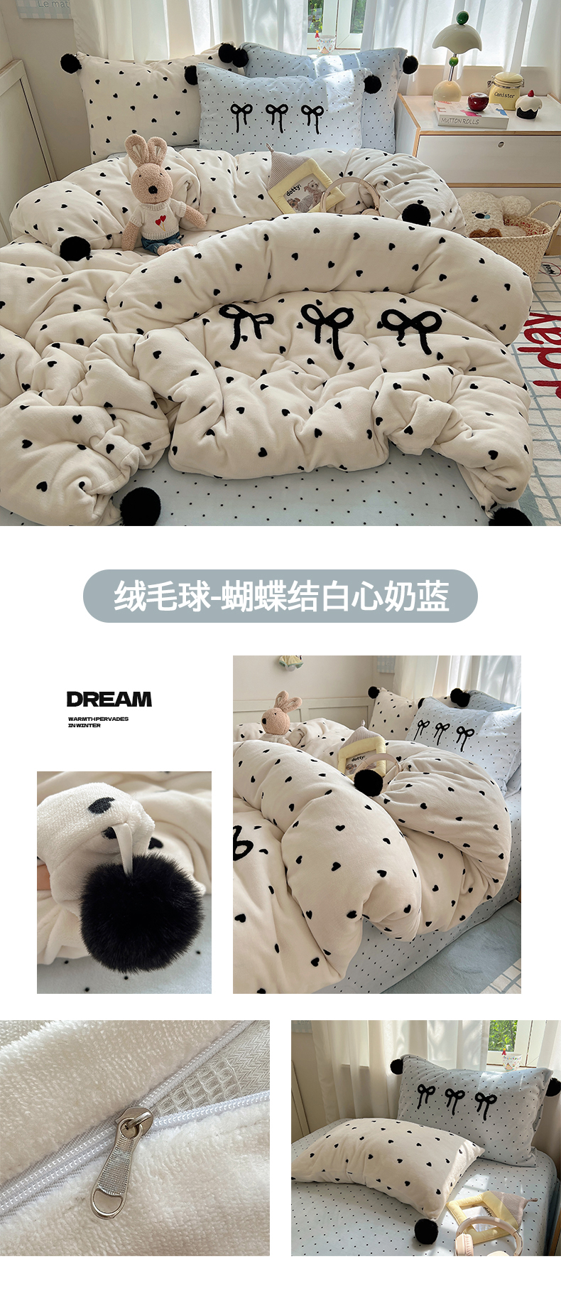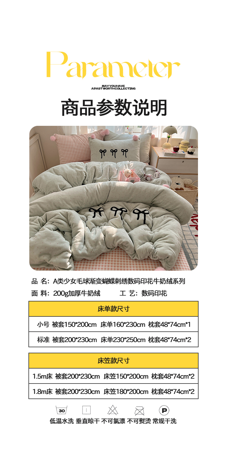 当前位置: 91家纺网 > 商品网购 > 床品套件 > 四件套 > 牛奶绒四件套 > 桃子家居 2025新款insA类少女甜心毛球混搭工艺蝴蝶结刺绣毛巾绣印花加厚牛奶绒四件套 绒毛球-蝴蝶结茉莉奶绿