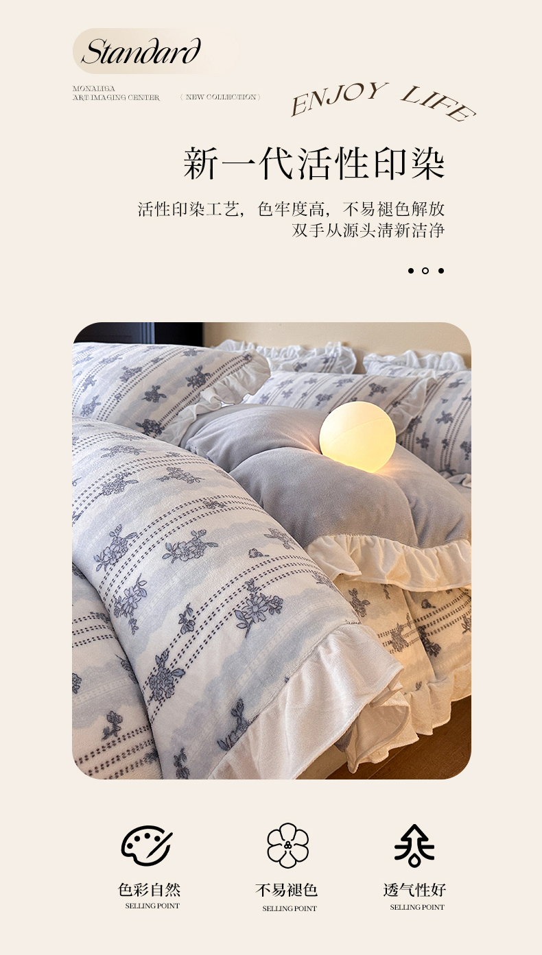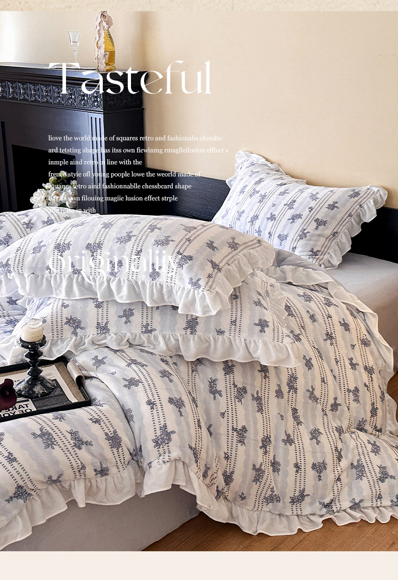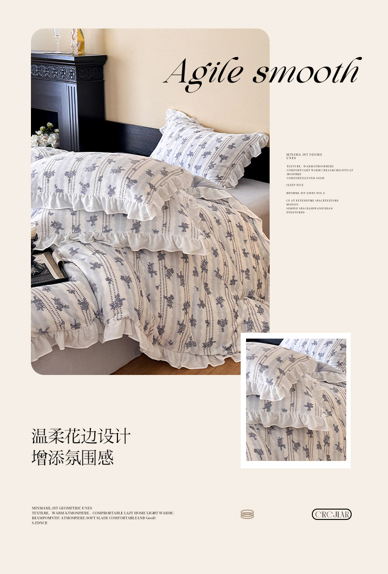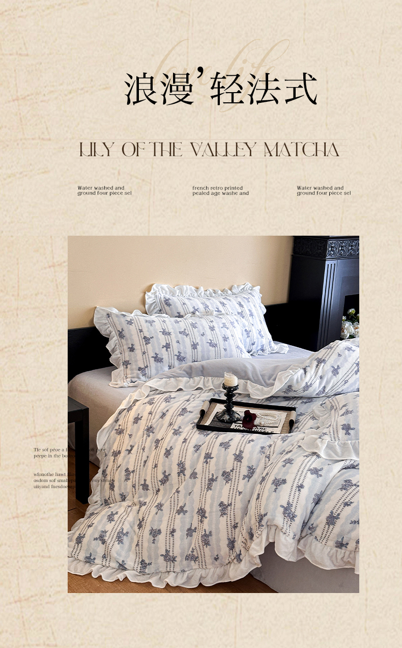(总)三朵家纺 2026新款A类云柔水洗棉韩版法式花边云朵棉四件套,春夕集,罗逸维绿,如漫,惜花灰绿,赫拉