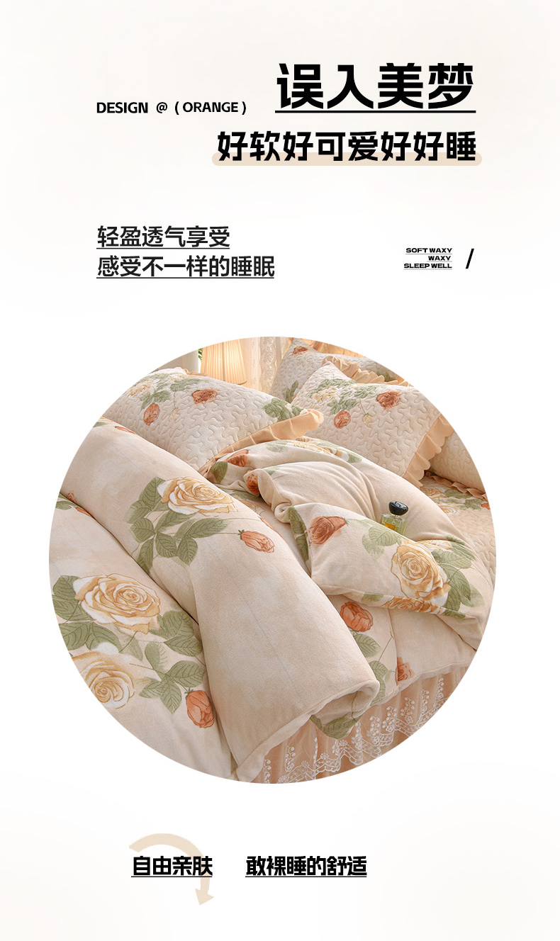 • 91家纺网 家纺一手货源 找家纺 艺慕家纺 2025新款时尚印花牛奶绒床盖四件套 盛世牡丹