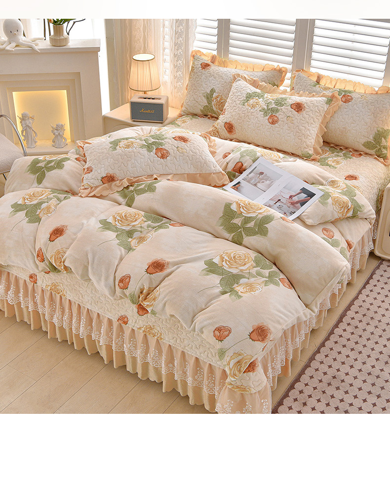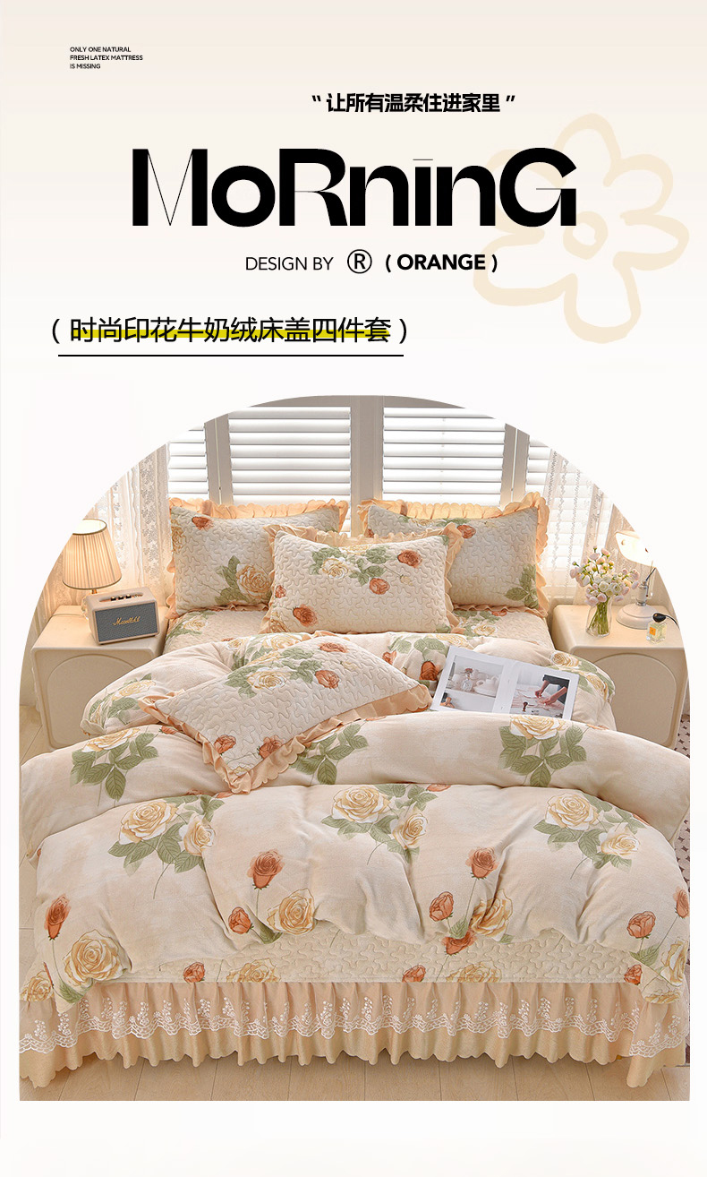 艺慕家纺 2025新款时尚印花牛奶绒床盖四件套 盛世牡丹