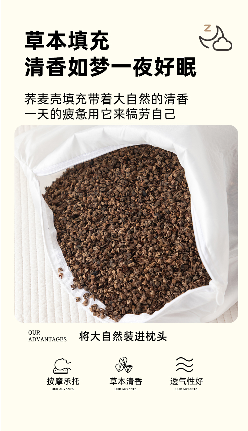 (总)大熊枕芯 2025新款棉麻刺绣款荞麦枕枕头枕芯,棉麻刺绣款荞麦枕