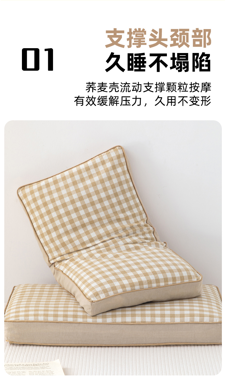 商品名称:大熊枕芯 2025新款全棉水洗棉简约荞麦枕头枕芯 简约全棉-方格蓝
