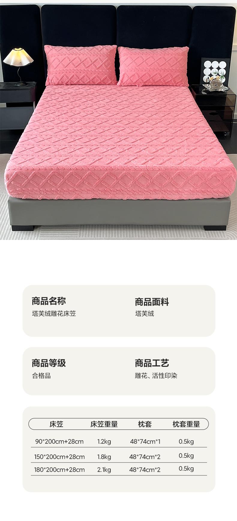 • 91家纺网 家纺一手货源 找家纺 米瑞娜 2025秋冬新款塔芙绒床笠跨境外贸单品尺寸齐全 玫红