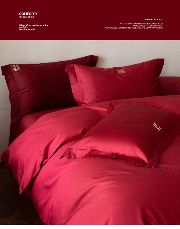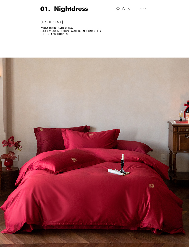 床品套件 > 四件套 > 婚庆四件套 > (总)ONE TWO ONE 121 2025新款100S长绒棉贡缎婚庆四件套-东方喜嫁【提供买家秀】为了各位老板们都有利润空间,平台控价券后不得低于318/338元,感谢您的配合与支持