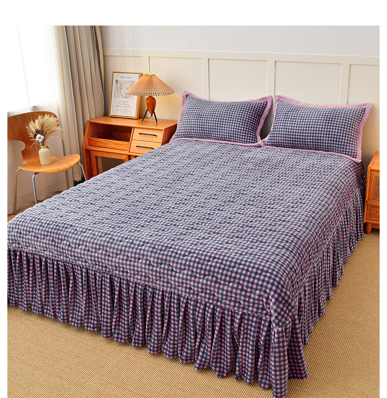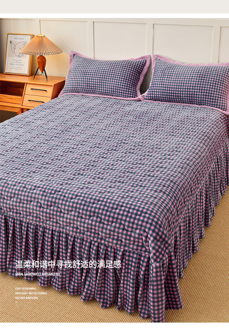 茉保家纺 2025新款无印风款牛奶绒床盖 紫小格