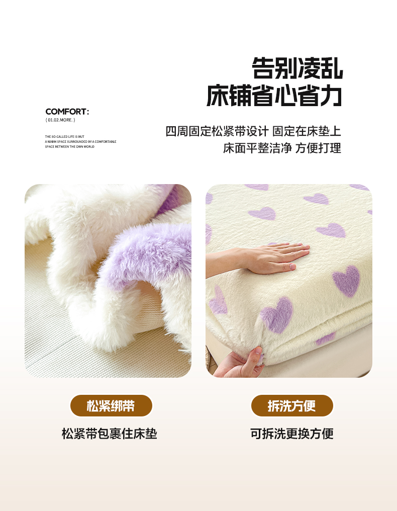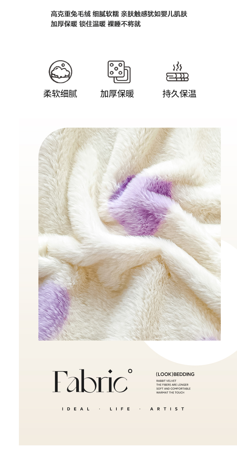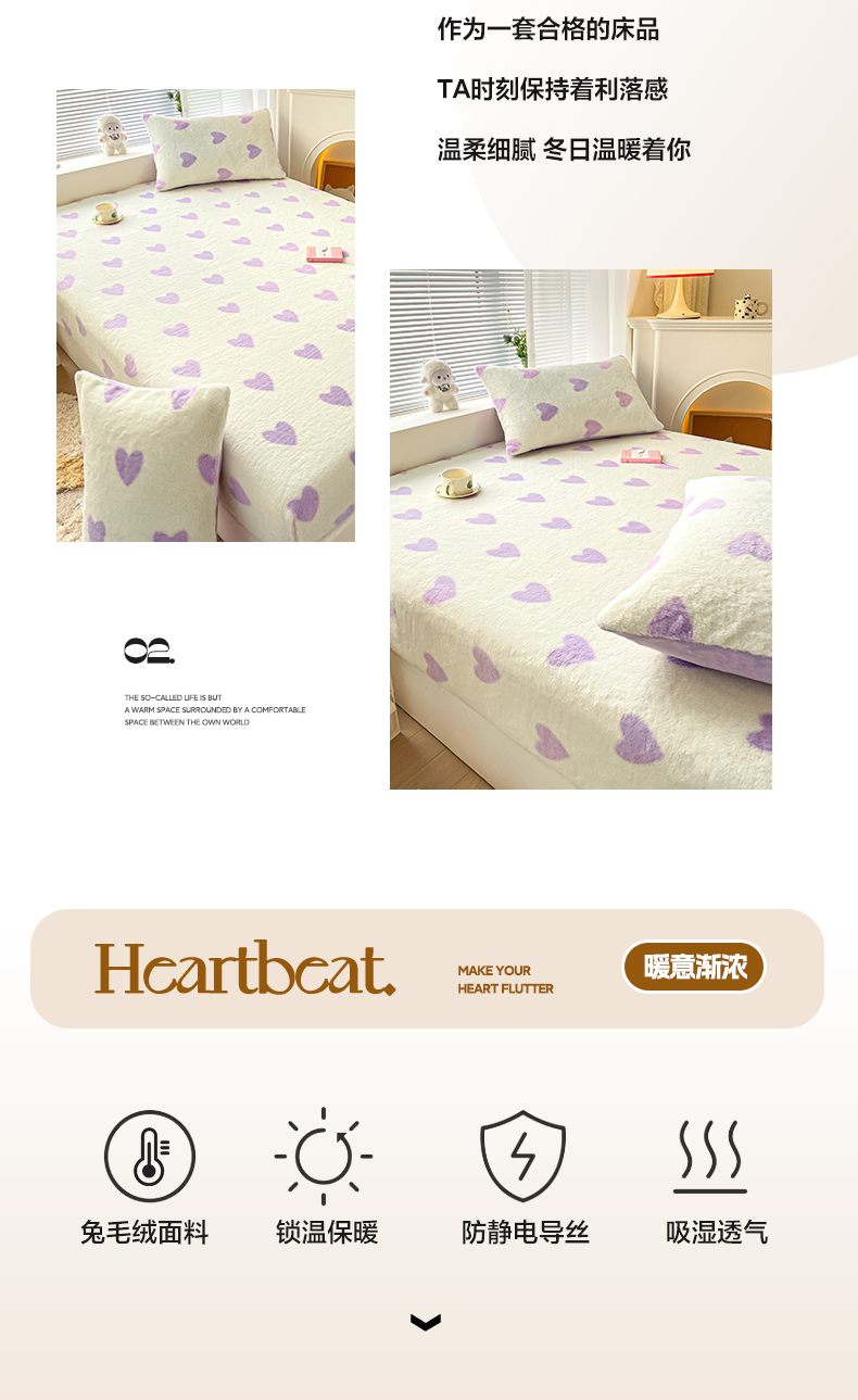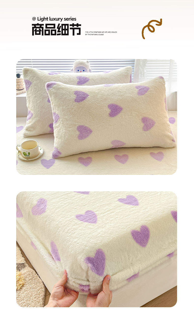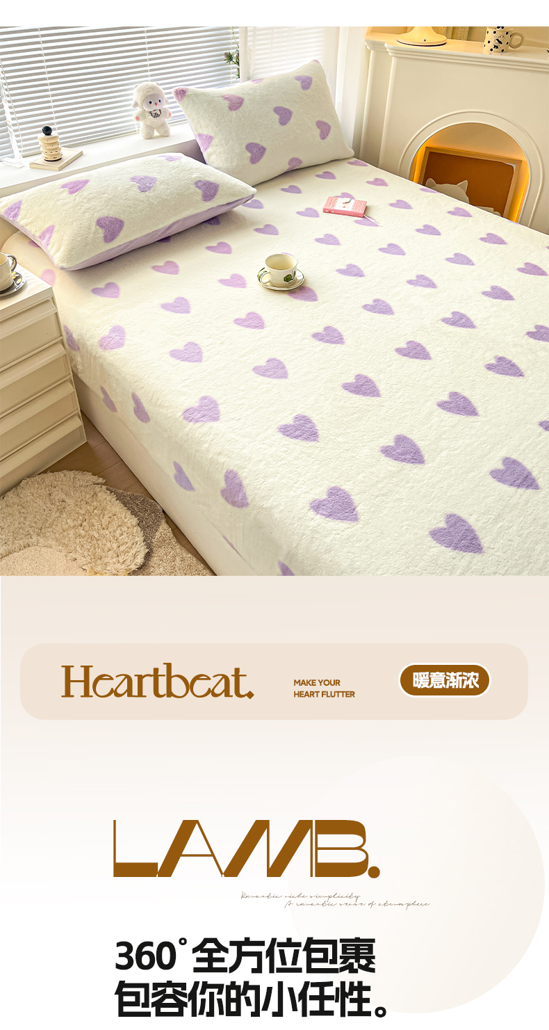 商品名称:雅居纺家纺 2025新款高克重兔绒印花单床笠-爱心 爱心-紫