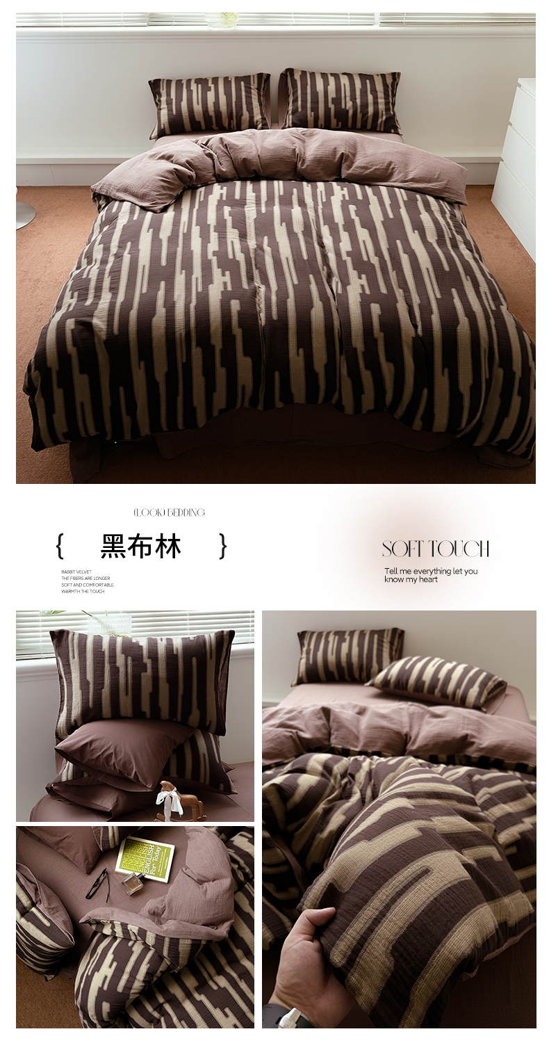 (总)棉小二 2025新款全棉色织条纹双层纱四件套,条纹白,条纹咖,条纹驼