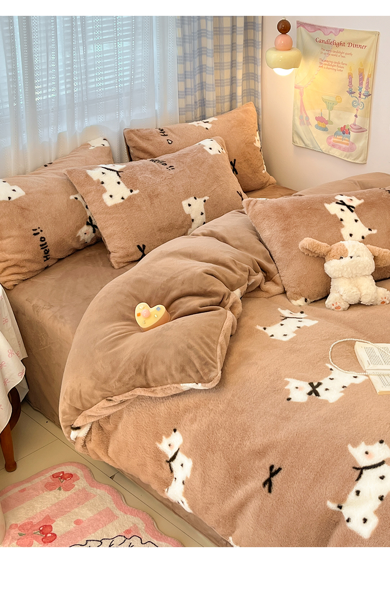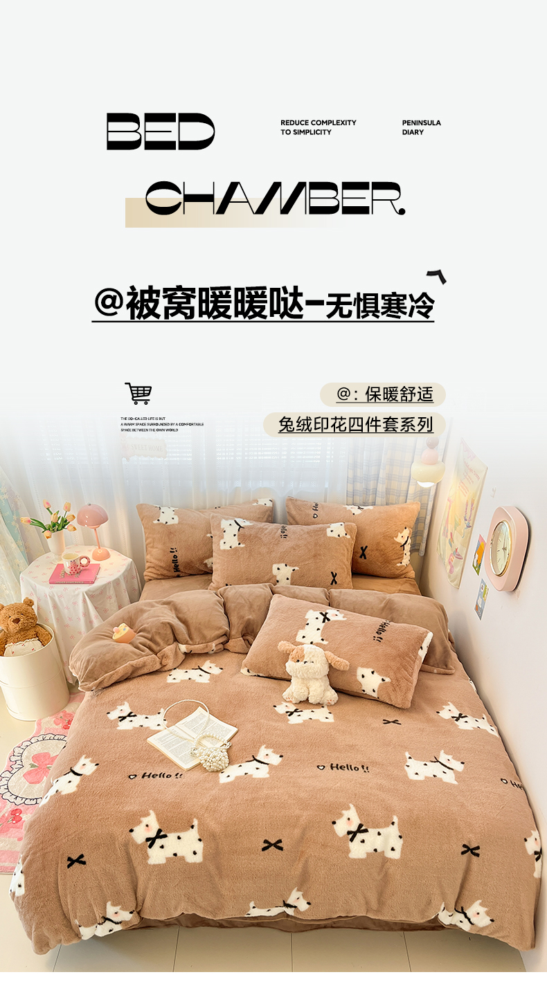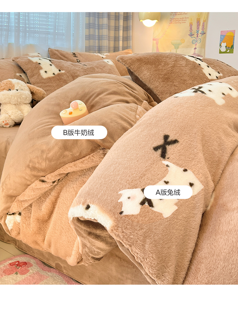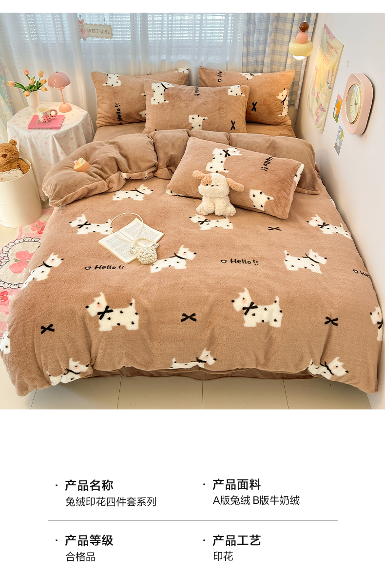 雅居纺家纺 2025新款保暖舒适兔绒印花四件套 绅士高希地