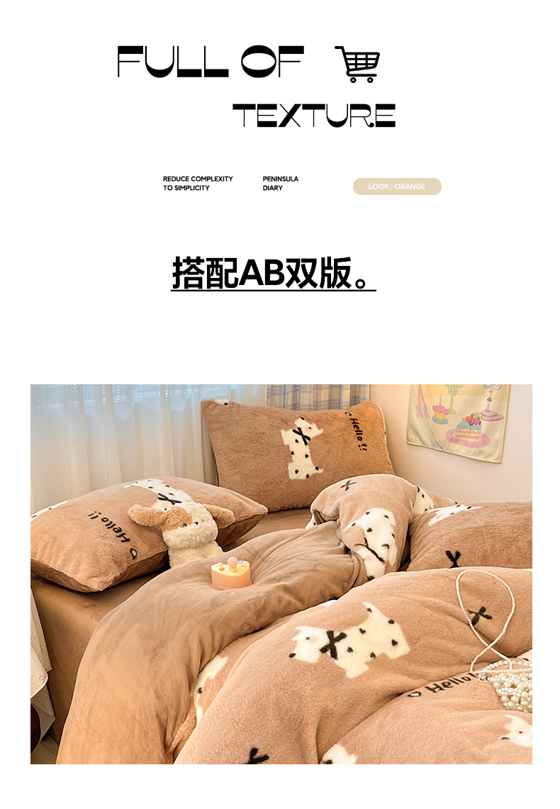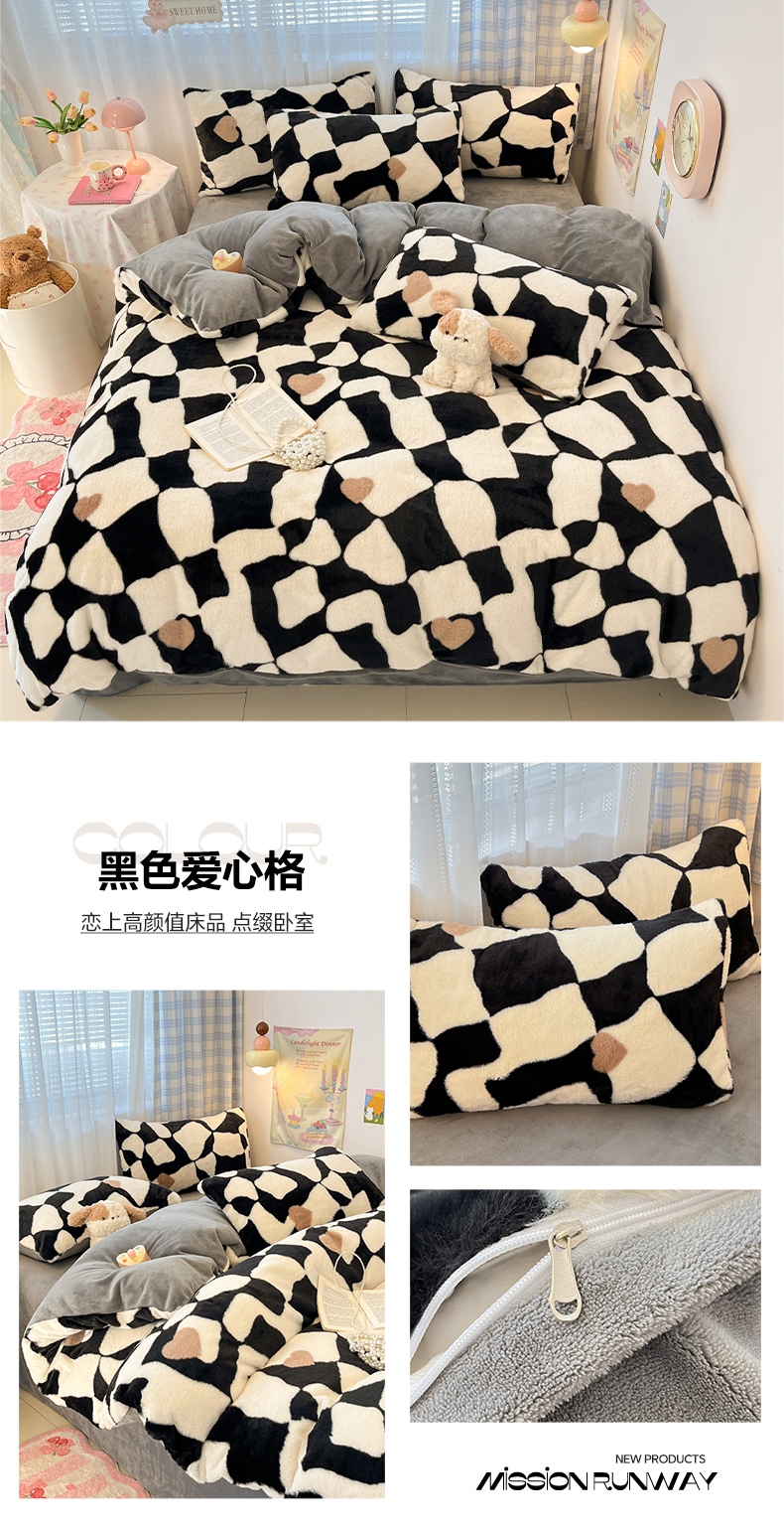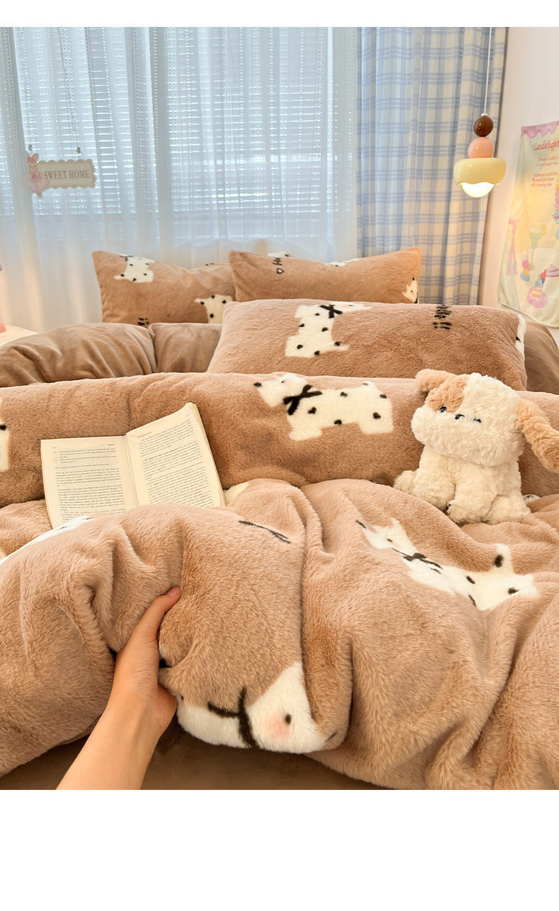 雅居纺家纺 2025新款保暖舒适兔绒印花四件套 绅士高希地