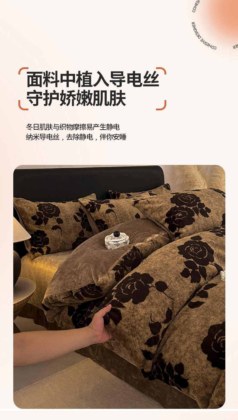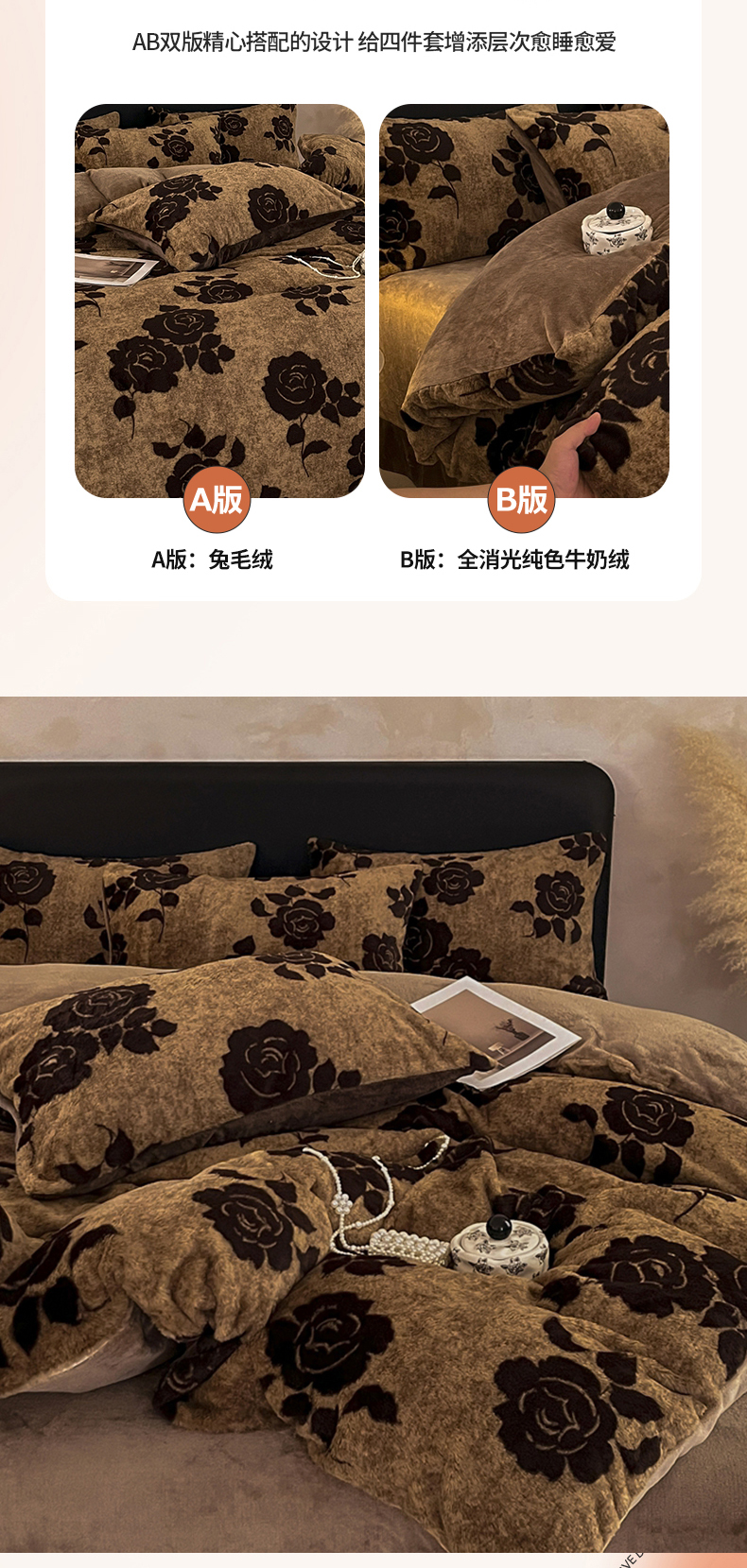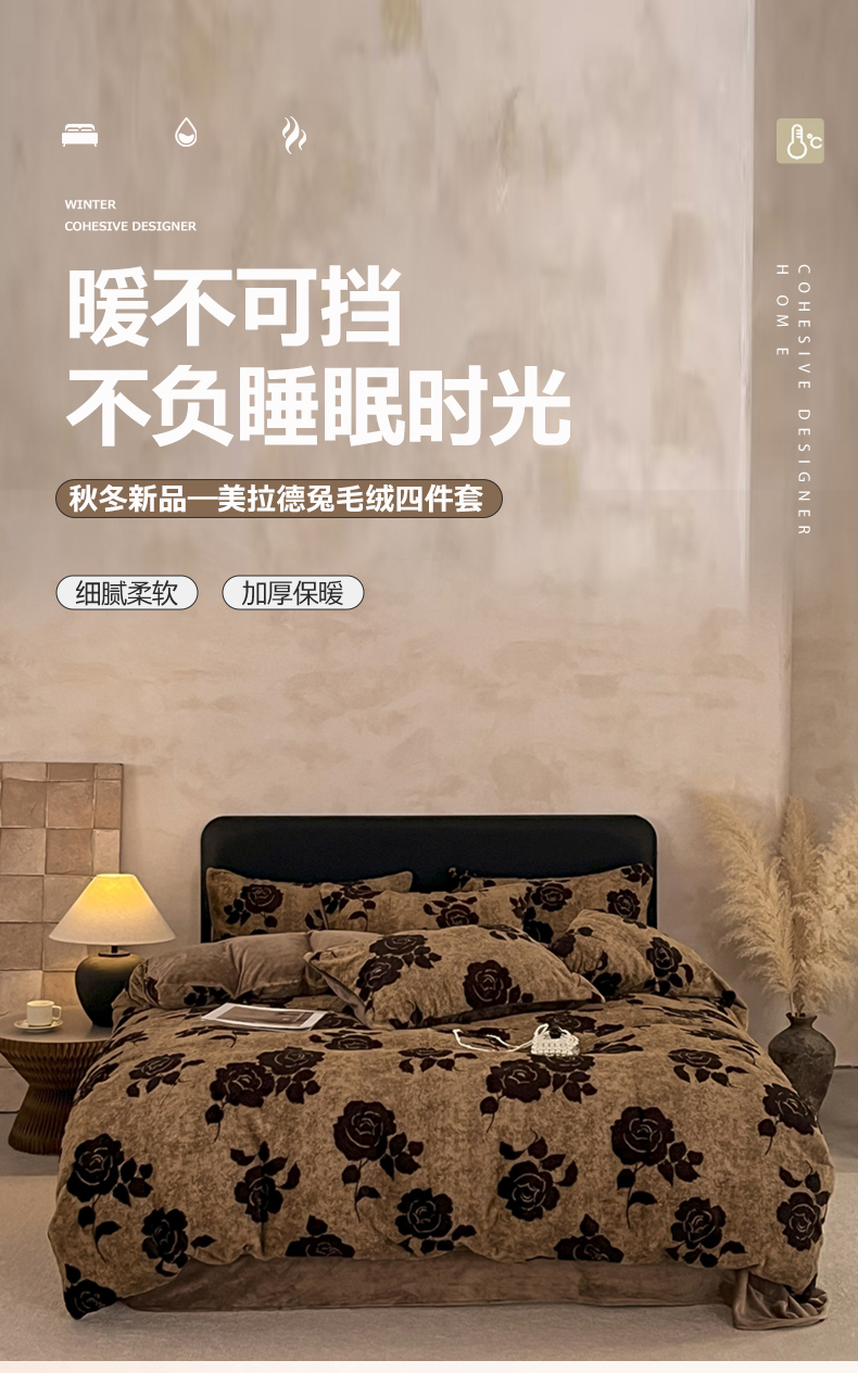 商品名称:铠畅家纺 2025新款美拉德风格兔毛绒床单四件套 美拉德-玫瑰咖