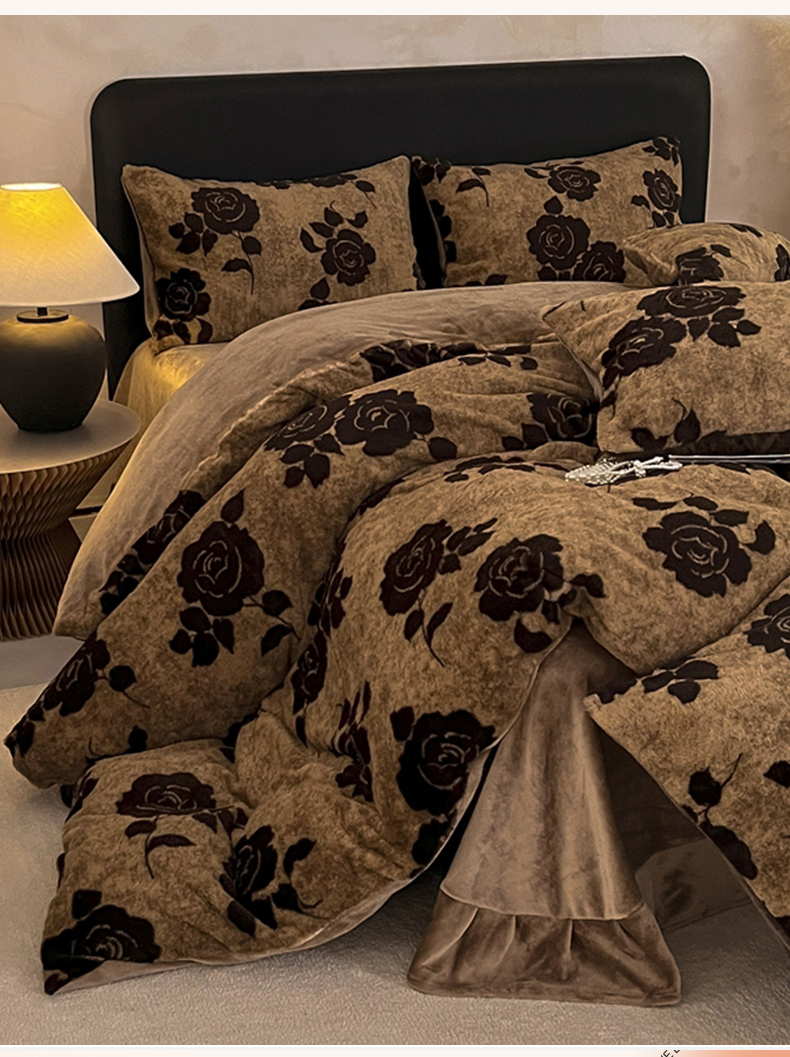 铠畅家纺 2025新款美拉德风格兔毛绒床单四件套 美拉德-玫瑰咖