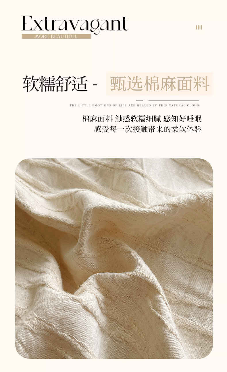 商品名称:琪格格纺织 2025新款复古简约棉麻轻奢大提花全棉加厚磨毛四件套 纳斯-本色麻