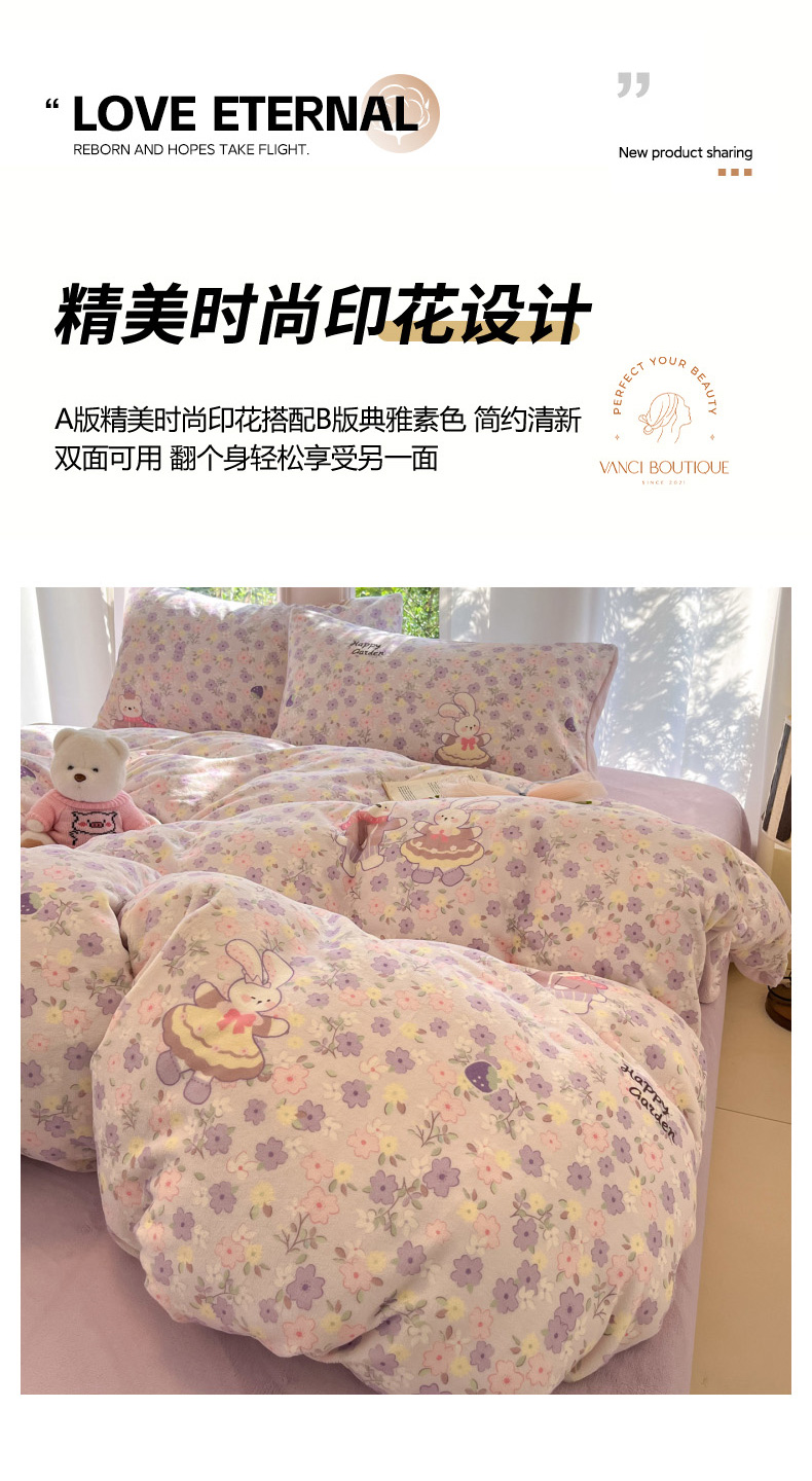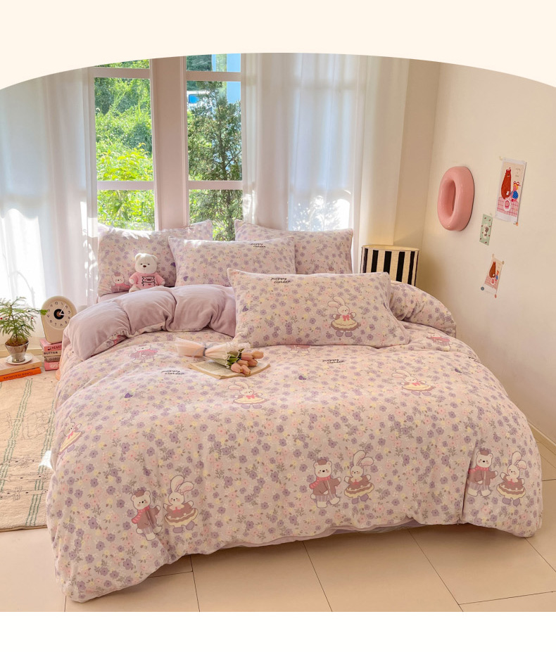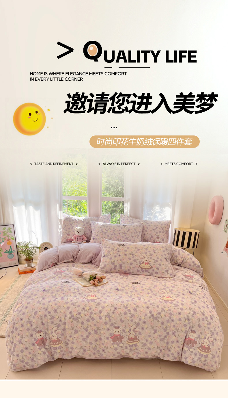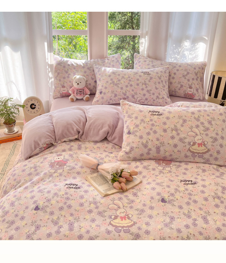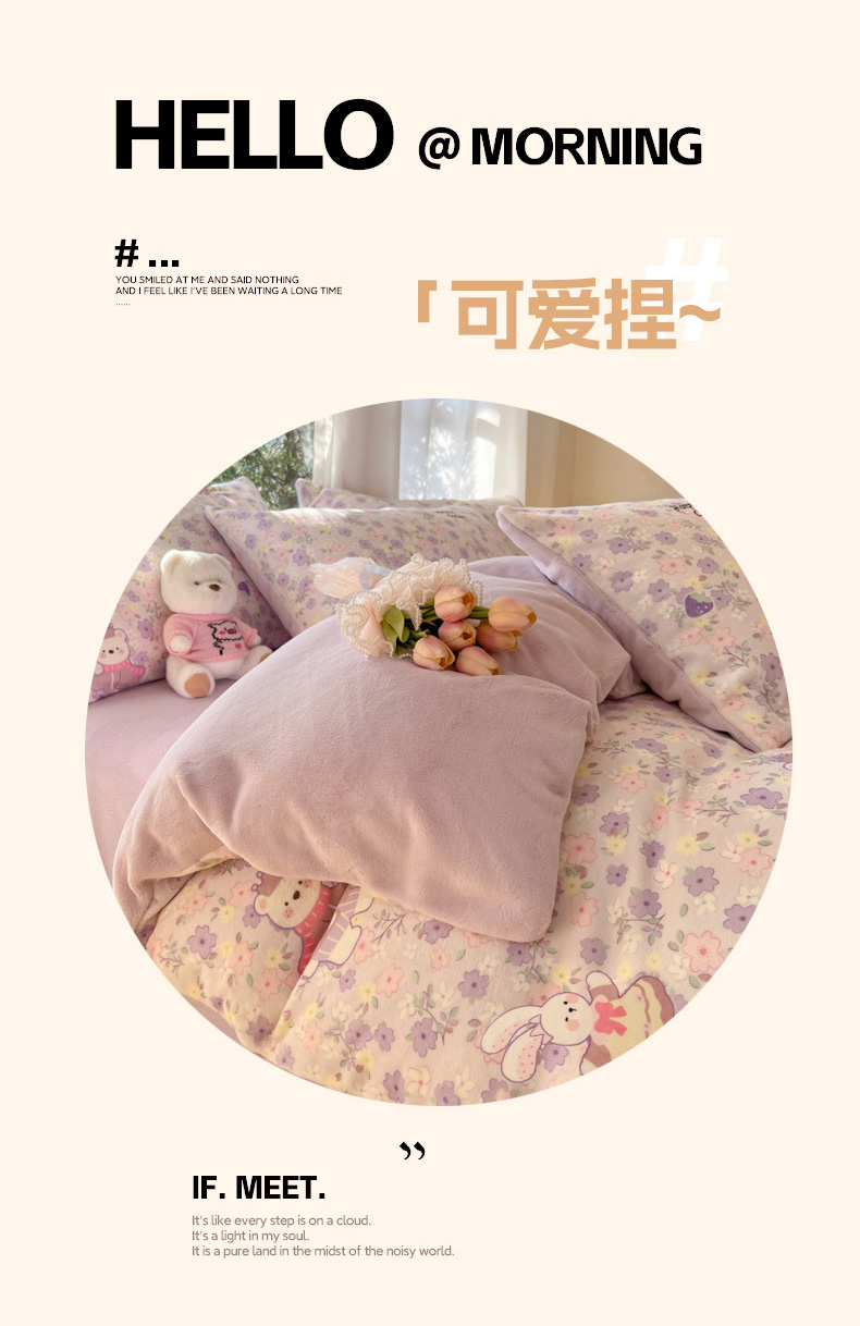 当前位置: 91家纺网 > 商品网购 > 床品套件 > 四件套 > 牛奶绒四件套 > 慕澄家纺 2025新款小清新牛奶绒印花四件套 碎碎紫兔