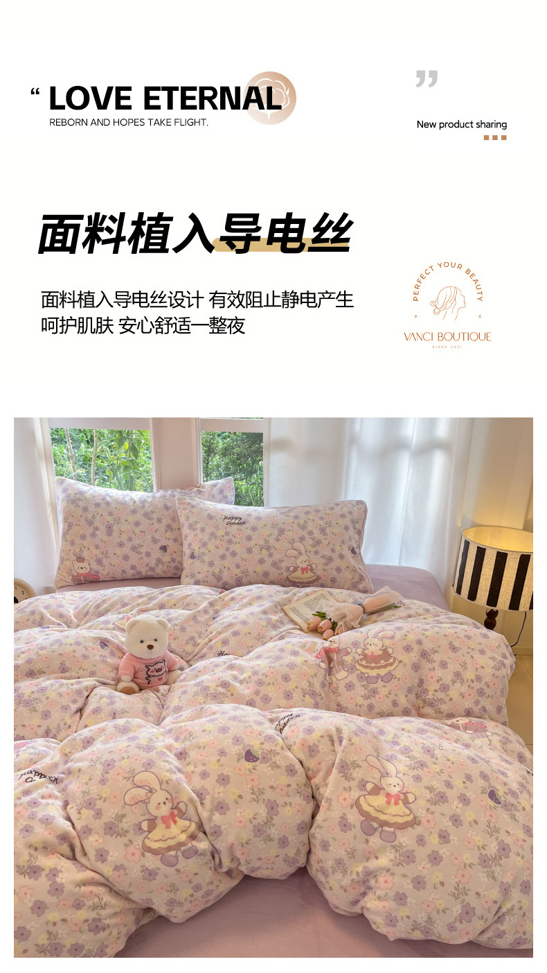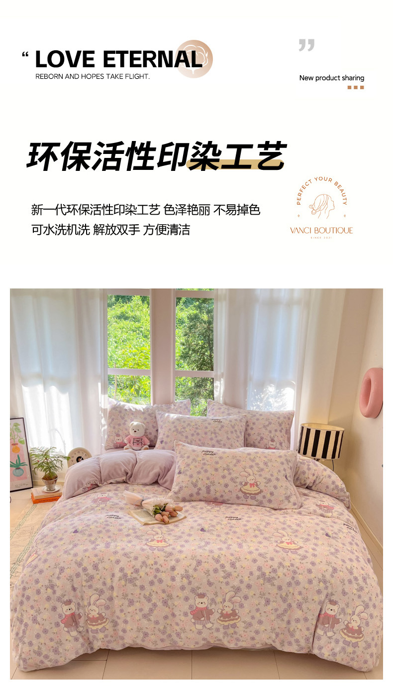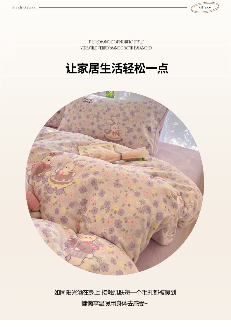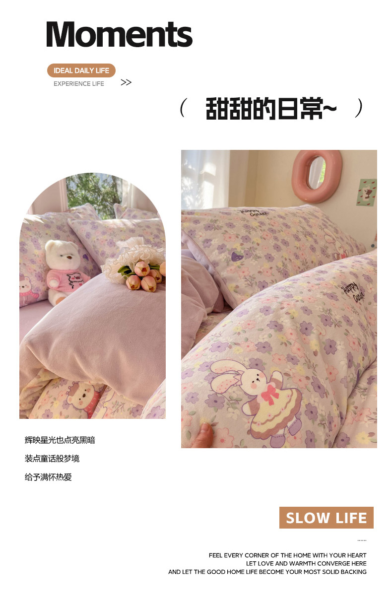 当前位置: 91家纺网 > 商品网购 > 床品套件 > 四件套 > 牛奶绒四件套 > 慕澄家纺 2025新款小清新牛奶绒印花四件套 碎碎紫兔