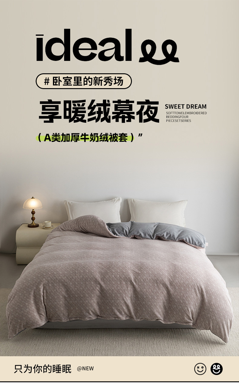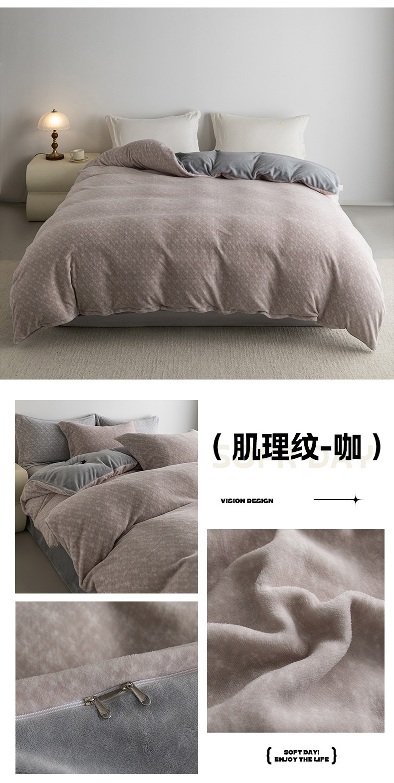 • 91家纺网 家纺一手货源 找家纺 锦罗绣 2025新款牛奶绒肌理纹单被套 肌理纹-咖