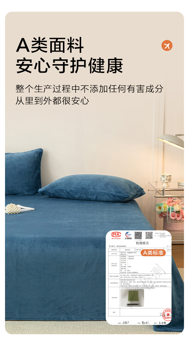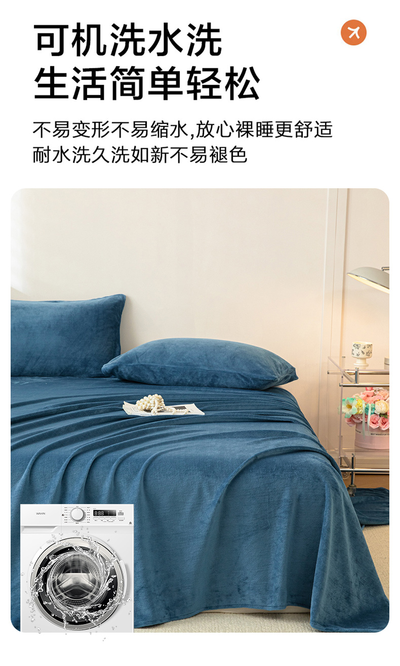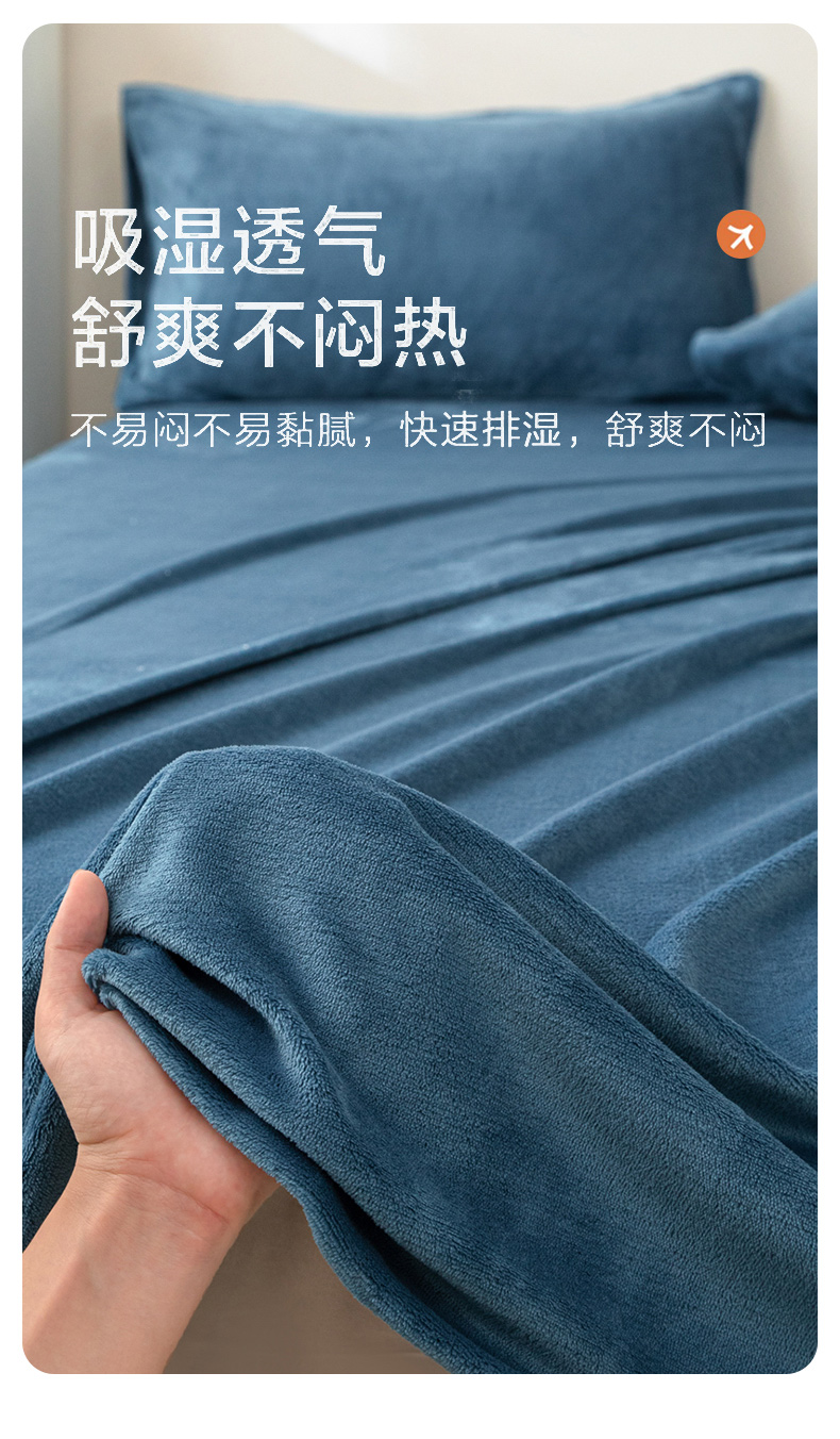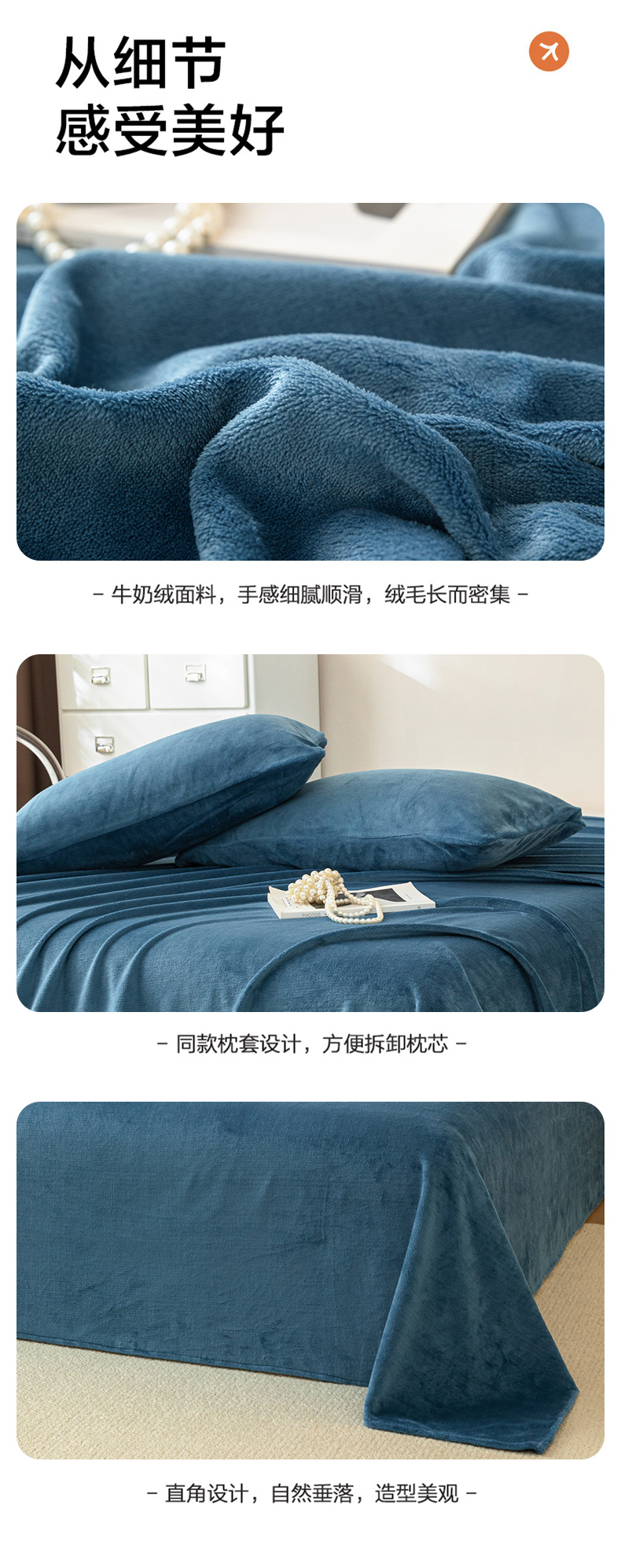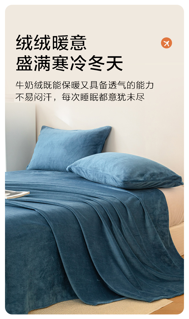 • 91家纺网 家纺一手货源 找家纺 眠博士 2025新款简约牛奶绒纯色单床单-场景二 牛奶绒纯色床单-靛青