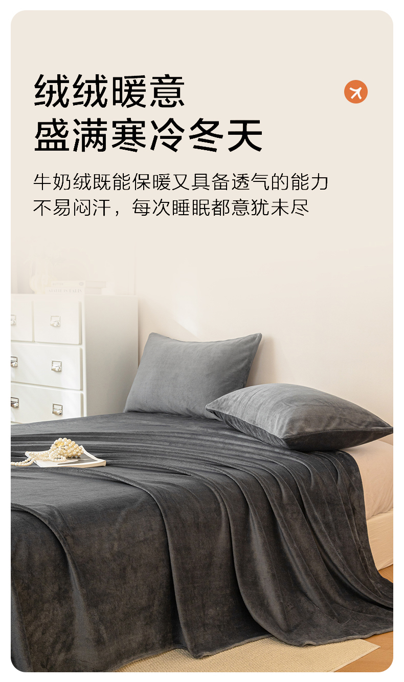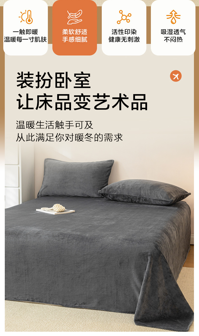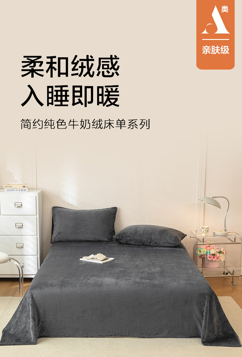 • 91家纺网 家纺一手货源 找家纺 眠博士 2025新款简约牛奶绒纯色单床单-场景二 牛奶绒纯色床单-深灰