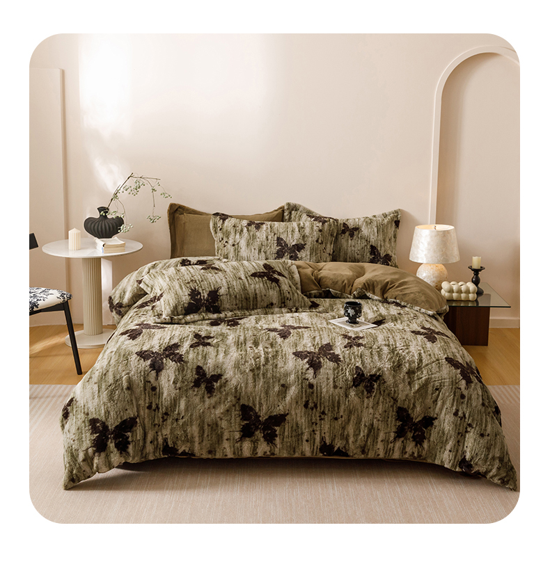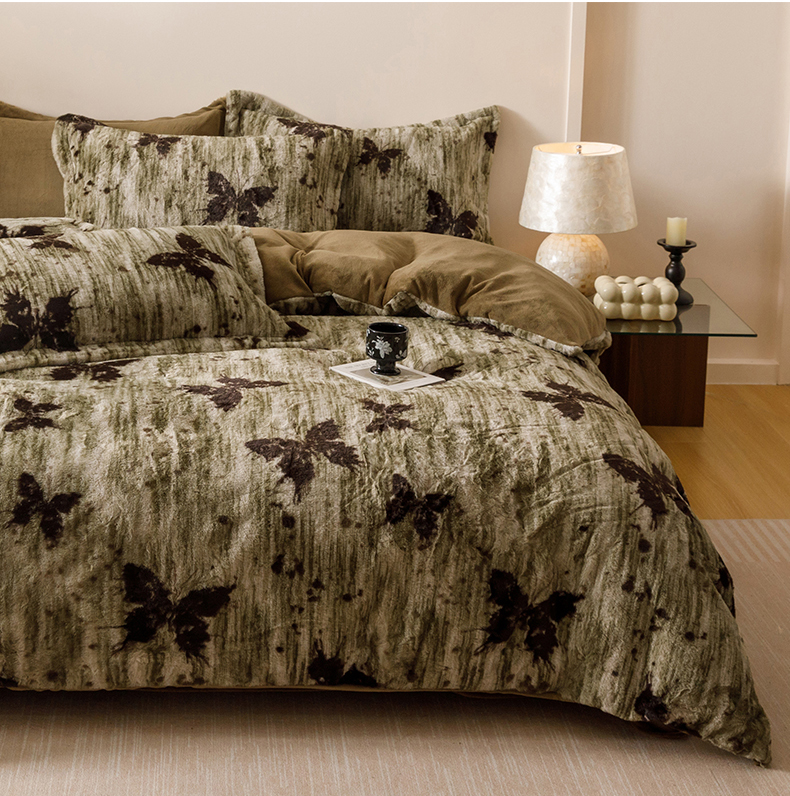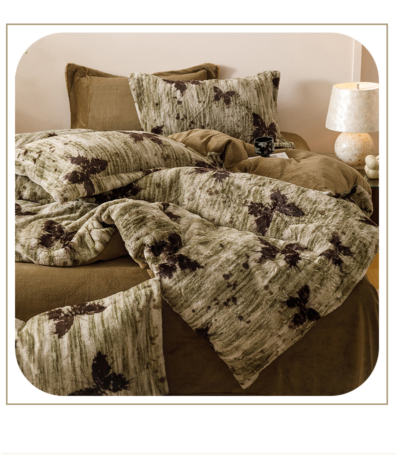 艾莱家纺 2025新款A类美拉德系兔绒超柔保暖四件套 蝶舞-绿