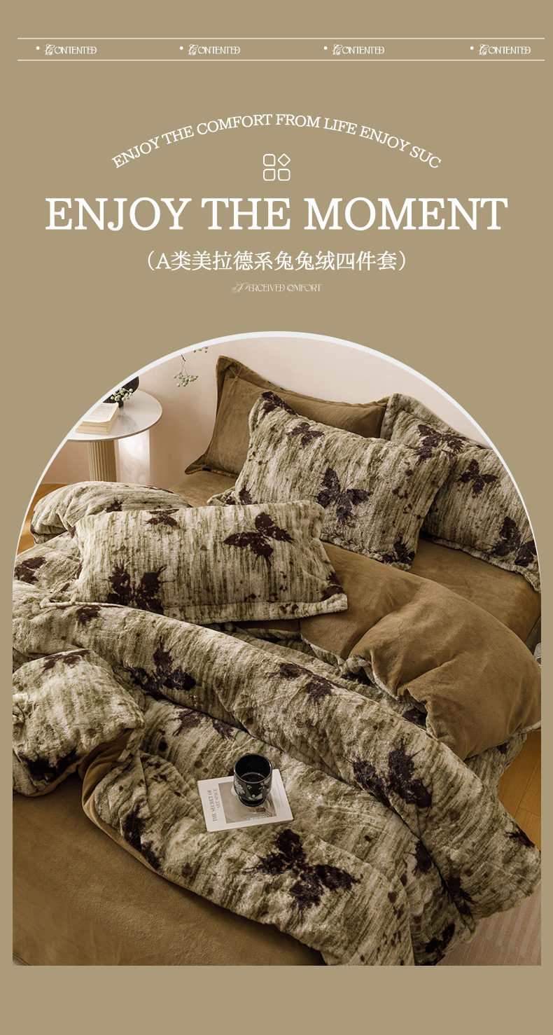 (总)艾莱家纺 2025新款A类美拉德系兔绒超柔保暖四件套,蝶豹-灰绿,蝶豹-咖棕,蝶舞-绿,繁花,盛放-灰,盛放-咖