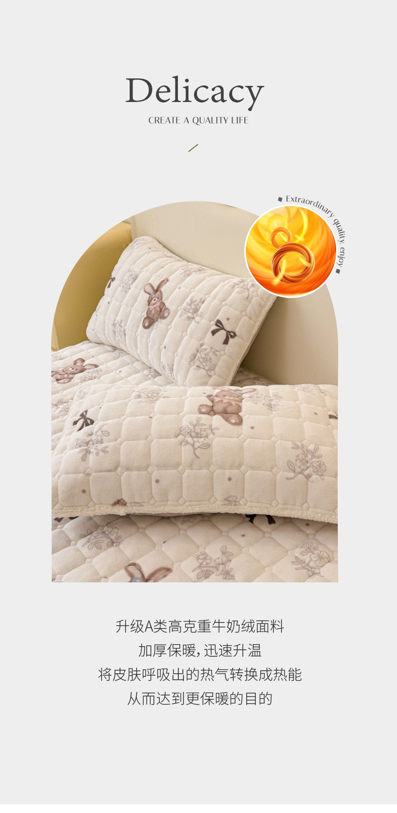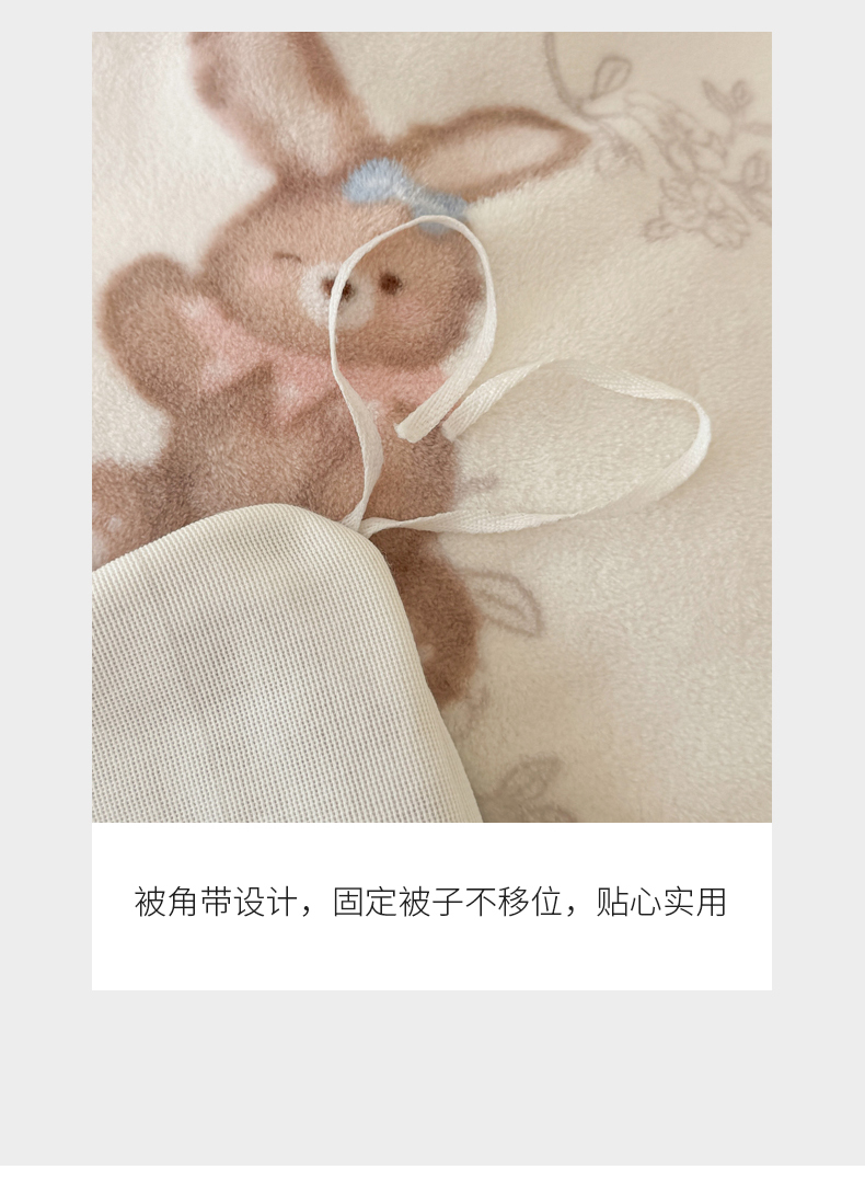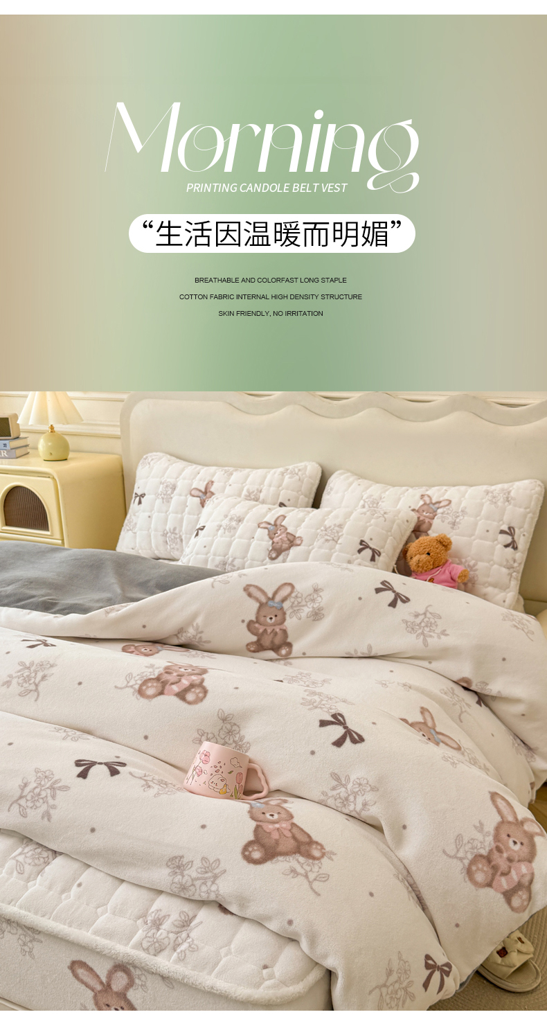 商品名称:LIFE.丽芙 2025秋冬新款A类牛奶绒加厚夹棉床笠+被套组合四件套 花环小兔