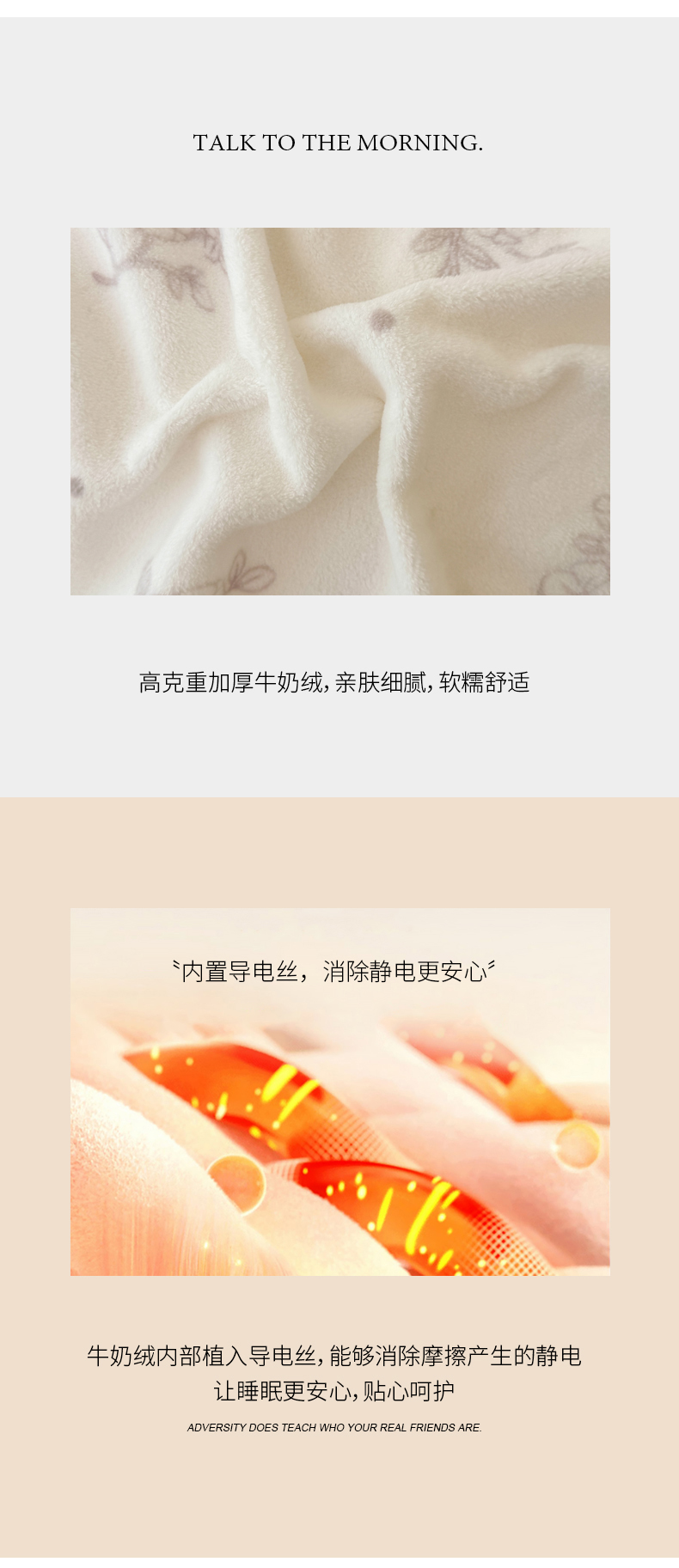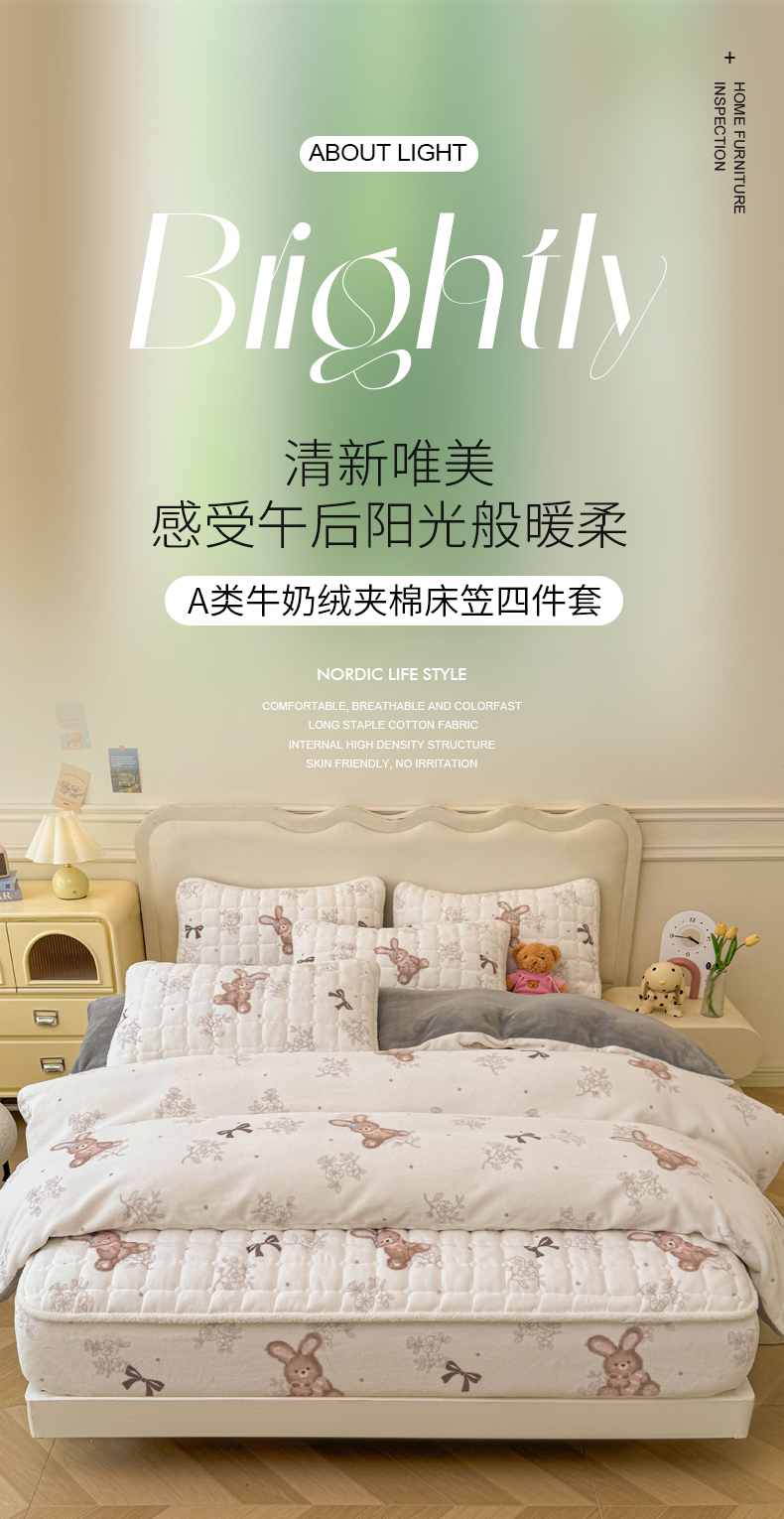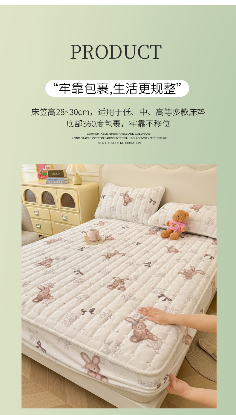 商品名称:LIFE.丽芙 2025秋冬新款A类牛奶绒加厚夹棉床笠+被套组合四件套 花环小兔