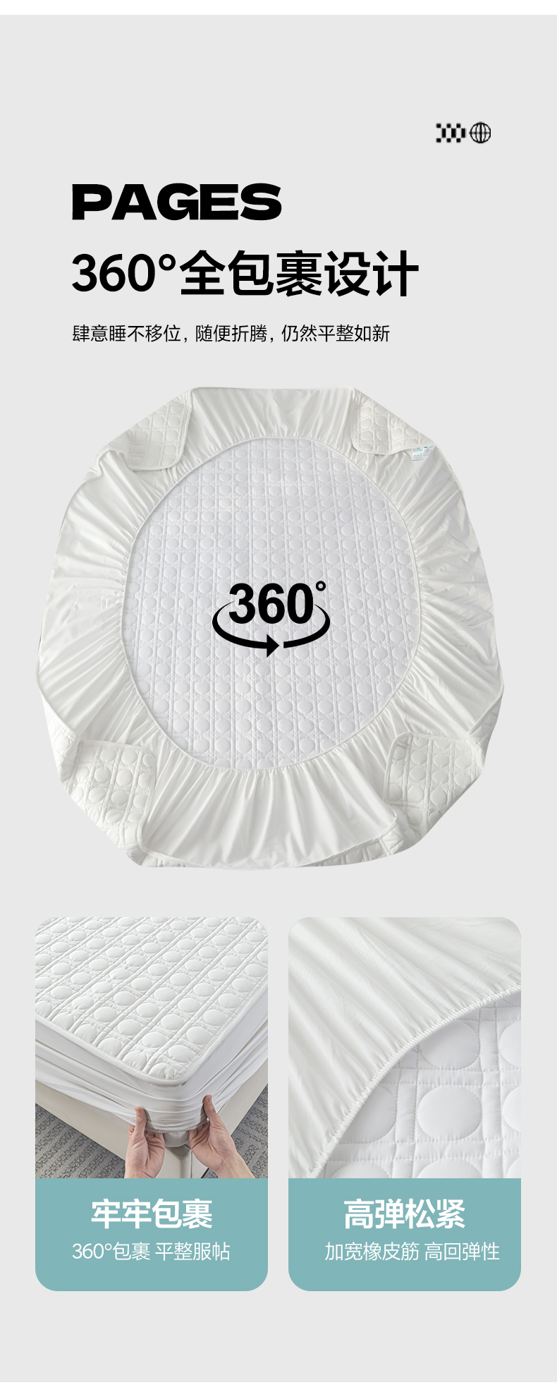 • 91家纺网 家纺一手货源 找家纺 佳笠家居 2025新款全棉纯棉夹棉床笠四季通用席梦思保护套床罩-初见系列 本白