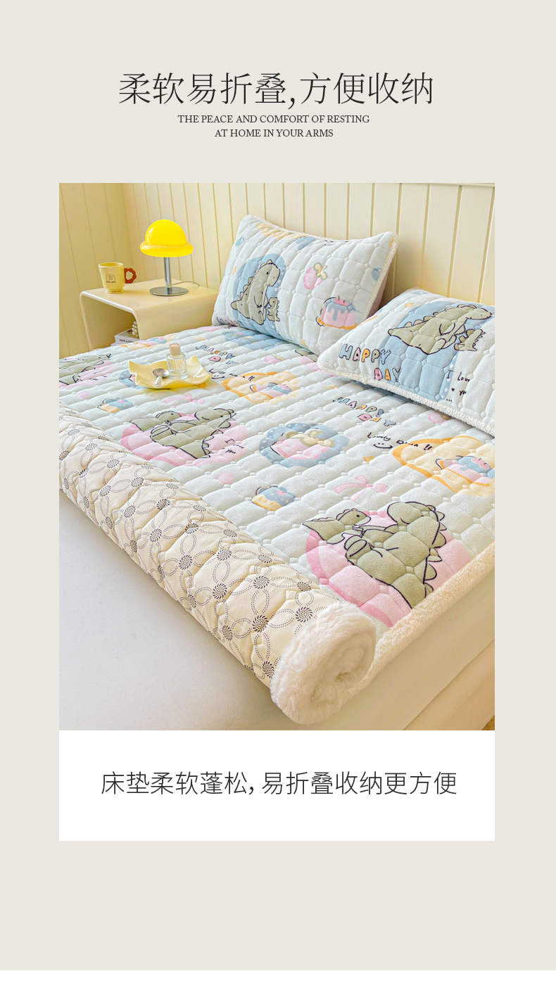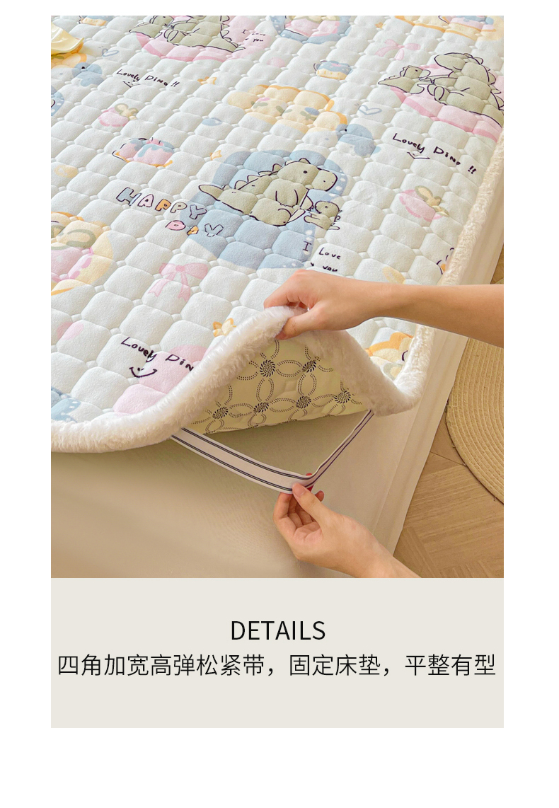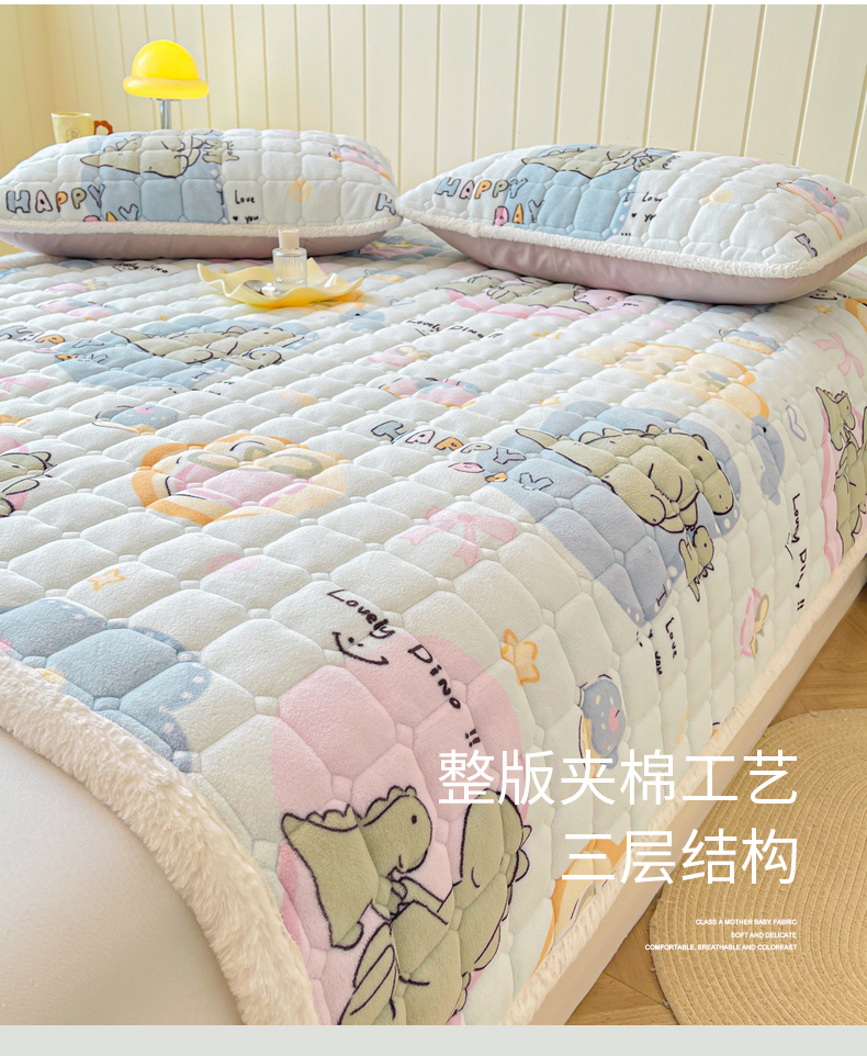 • 91家纺网 家纺一手货源 找家纺 LIFE.丽芙 2025秋冬新款牛奶绒加厚夹棉床垫床护垫单件印花卡通小清新床褥床垫子三件套 恐龙宝宝