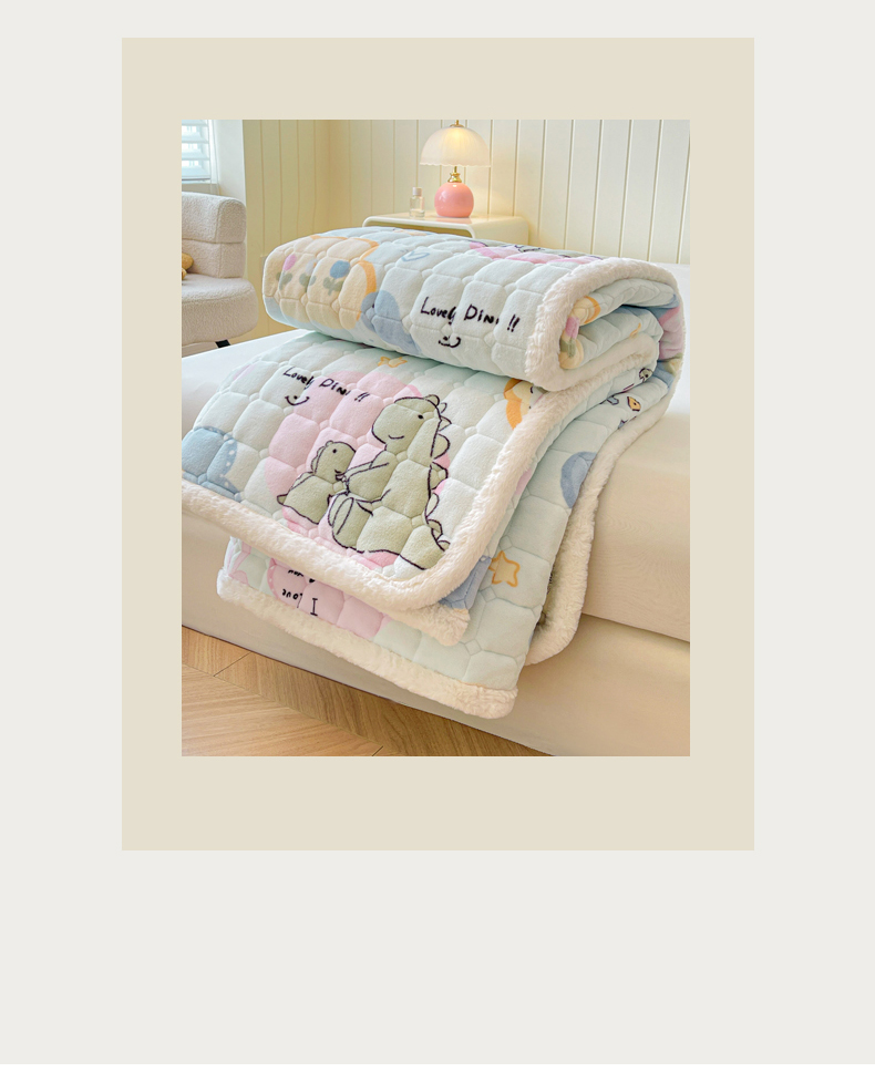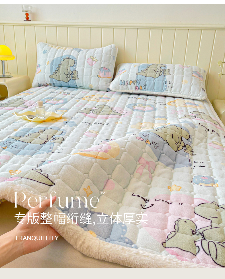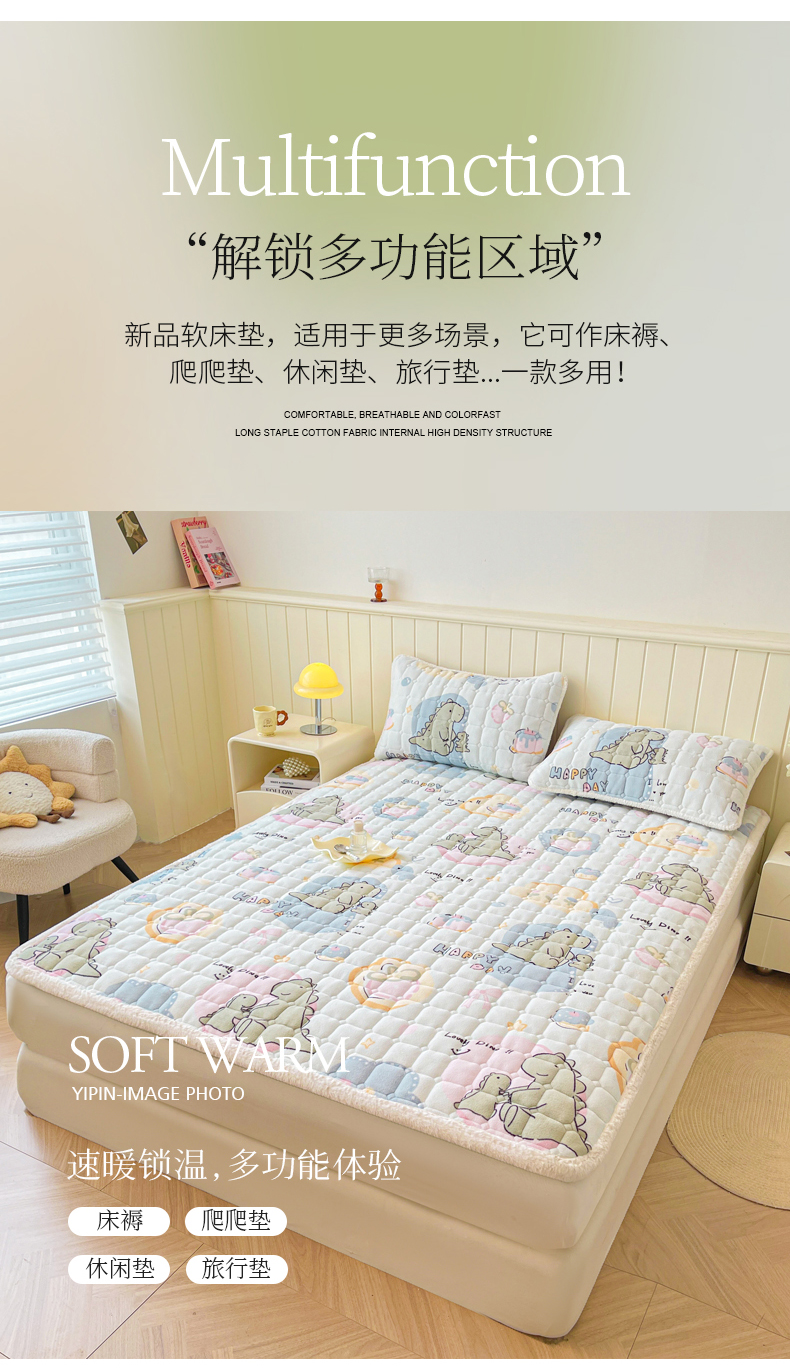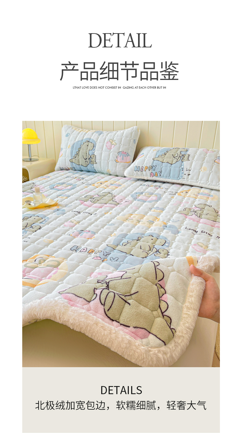 • 91家纺网 家纺一手货源 找家纺 LIFE.丽芙 2025秋冬新款牛奶绒加厚夹棉床垫床护垫单件印花卡通小清新床褥床垫子三件套 恐龙宝宝