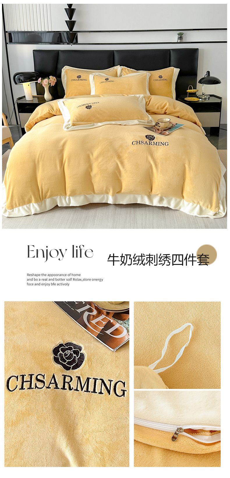 (总)畅畅家纺 2024新款高克重加厚保暖冬季牛奶绒纯色床盖款四件套,豆沙,灰色,天蓝,玉色,中国红