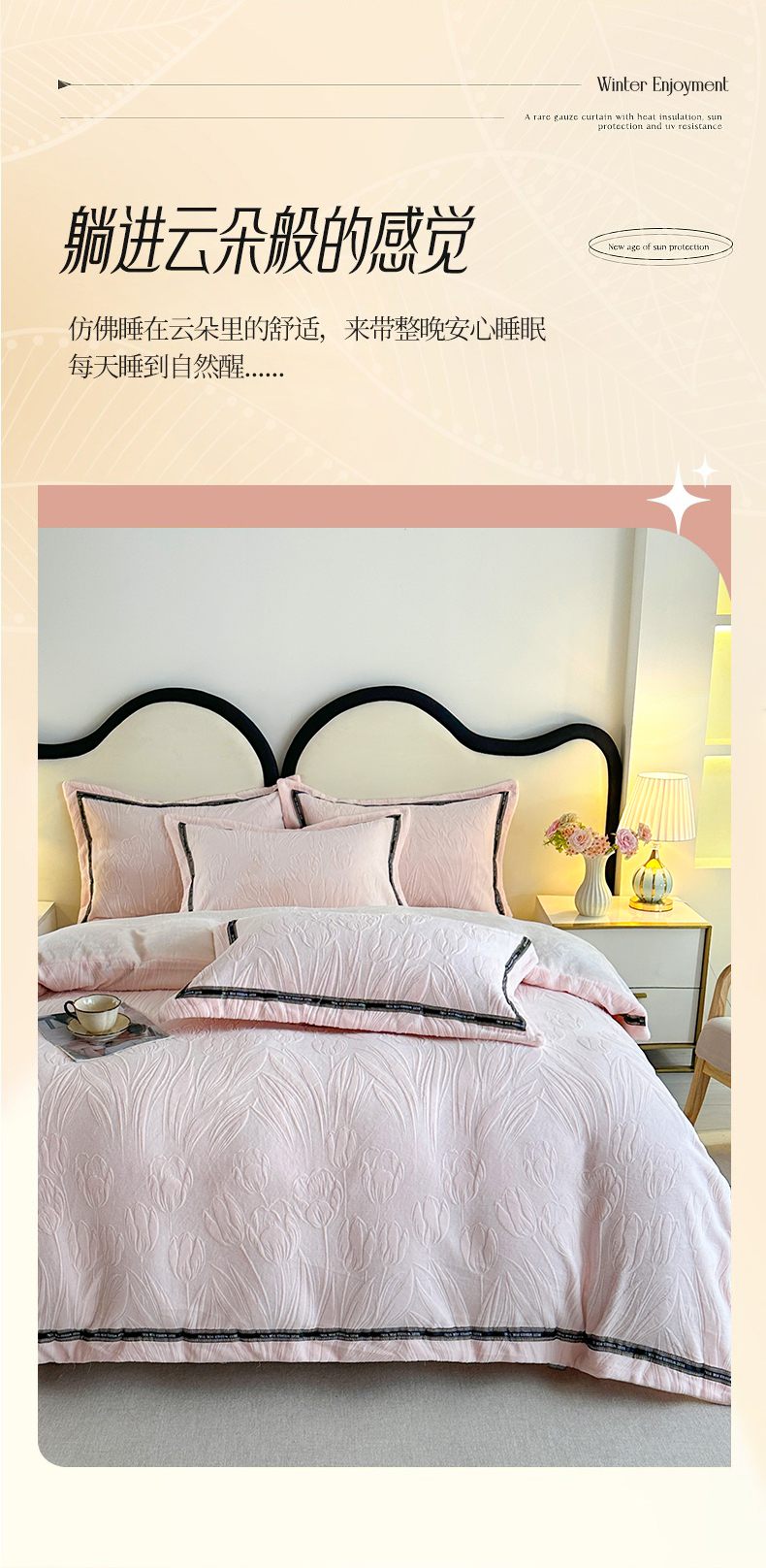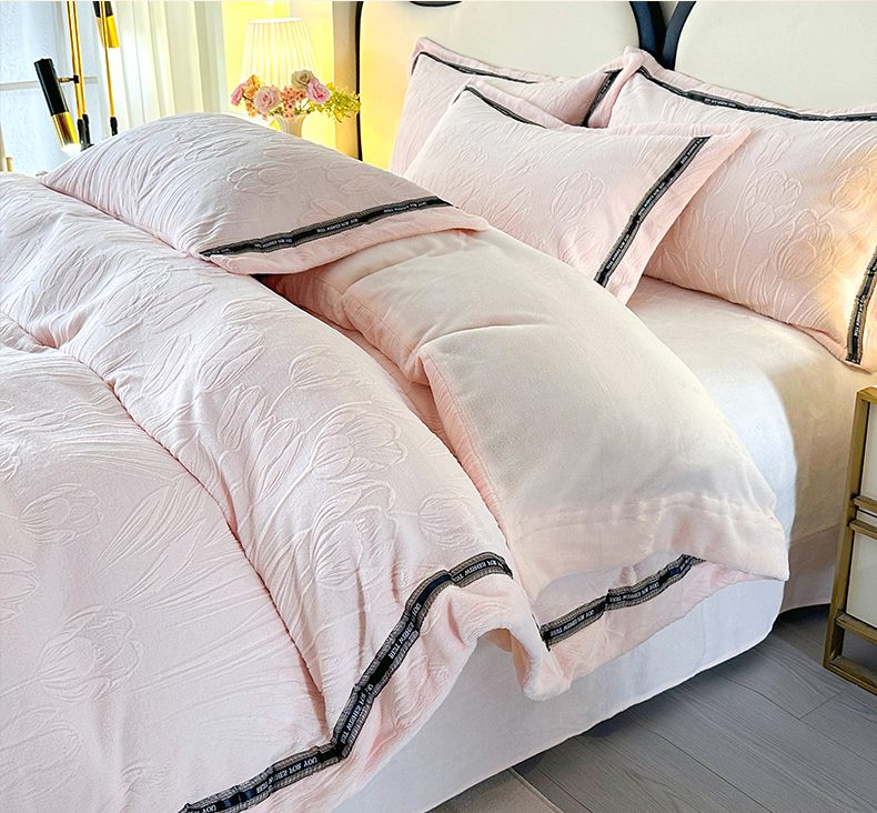 商品名称:畅畅家纺 2025新款高克重织带款冬季保暖牛奶绒雕花床单四件套 枫叶-粉