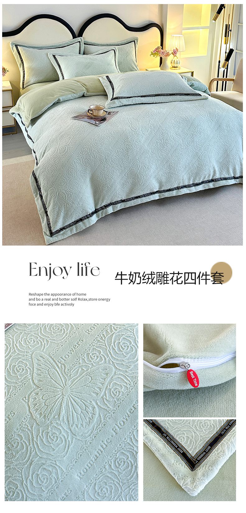 (总)畅畅家纺 2024新款高克重加厚保暖冬季牛奶绒纯色床盖款四件套,豆沙,灰色,天蓝,玉色,中国红